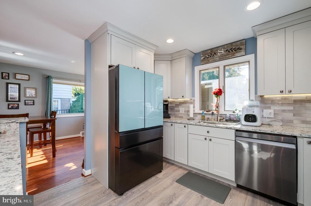 Welcome to this beautifully remodeled split level with a fenced in back yard in the Wilson School District. You will love the bright and cheery first floor open concept living room, dining room, and kitchen with a view of the wood burning fireplace from all rooms. Both the living room and the dining room have hardwood flooring and an abundance of natural lighting. The kitchen has been beautifully remodeled with LVT flooring, new cabinetry, quartz countertops, stainless steel appliances, and a huge island with electric and seating for four people. The upper level features 3 bedrooms and a remodeled bathroom with tile surround. The lower level offers a cozy family room, remodeled half bath, and laundry facilities, and a walkout, 1 car garage. The backyard is fenced in and offers the perfect place for recreation or dining on the patio. There is economical natural gas heat and central air, and the existing solar panel lease will be paid off by the seller; thereby helping you save on utility costs. Come take a look and be home for the holidays.