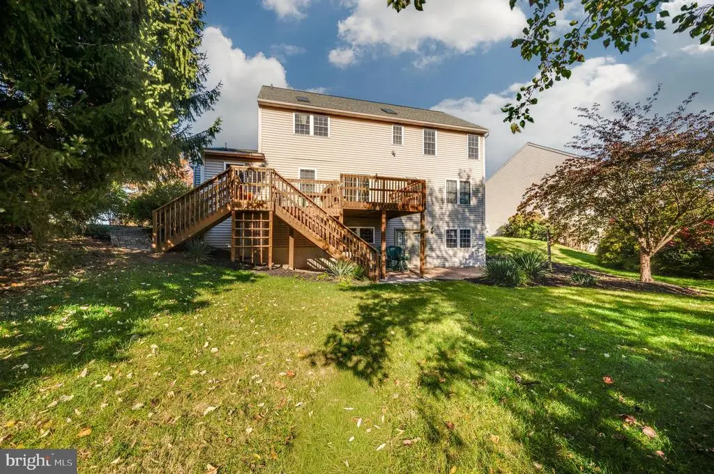 Welcome to 1215 Fox Road, located in the desirable Reeser Heights community within the Schuylkill Valley School District. This beautiful 4-bedroom, 2.5-bath home has been freshly painted throughout and is move-in ready. The first floor offers a bright and inviting layout, featuring a spacious living room and dining area that flow seamlessly into the kitchen. The kitchen includes a brand-new dishwasher and a sliding door that opens to a double-tier deck with steps leading down to a private backyard and paver patio, perfect for outdoor entertaining. The family room, complete with a cozy fireplace and brand-new carpeting, provides a comfortable space for relaxation. Upstairs, the primary suite features a walk-in closet and a private bathroom with a jacuzzi tub and walk-in shower. Three additional bedrooms with newer carpet and a full bath with a skylight complete the second floor. Additional highlights include a newer hot water heater (2020), newer ac system installed in 2018, a 2-car garage with a separate entry door, and a full unfinished basement with 9-foot ceilings and a walkout to the backyard , offering endless possibilities for future finishing. Enjoy peaceful living with modern comfort and plenty of space to grow in this wonderful Leesport home!