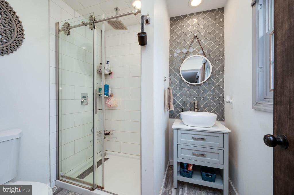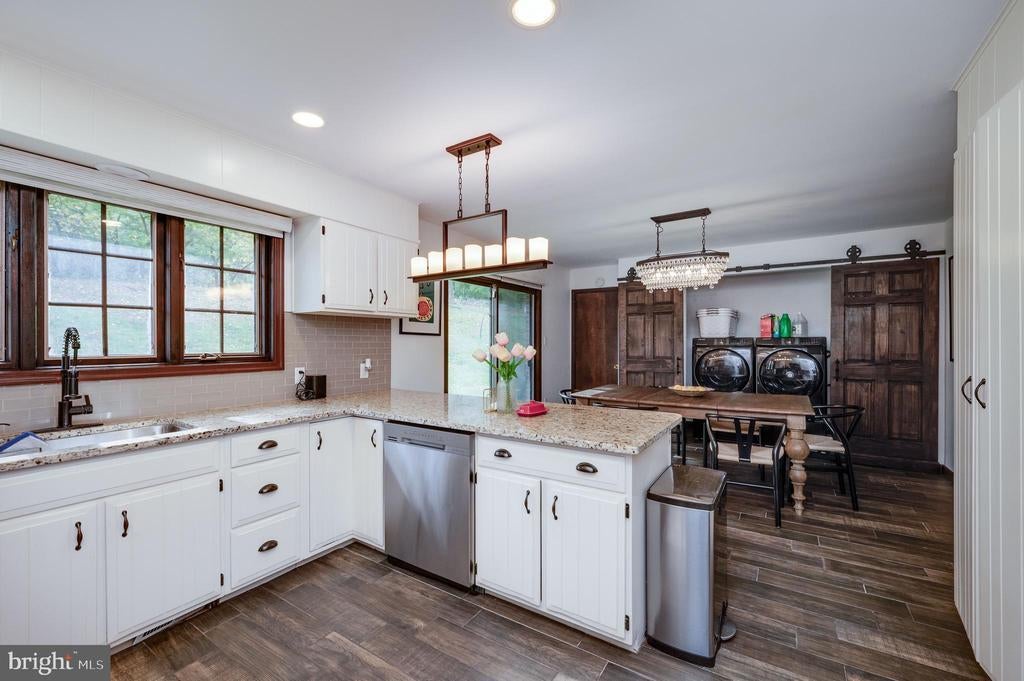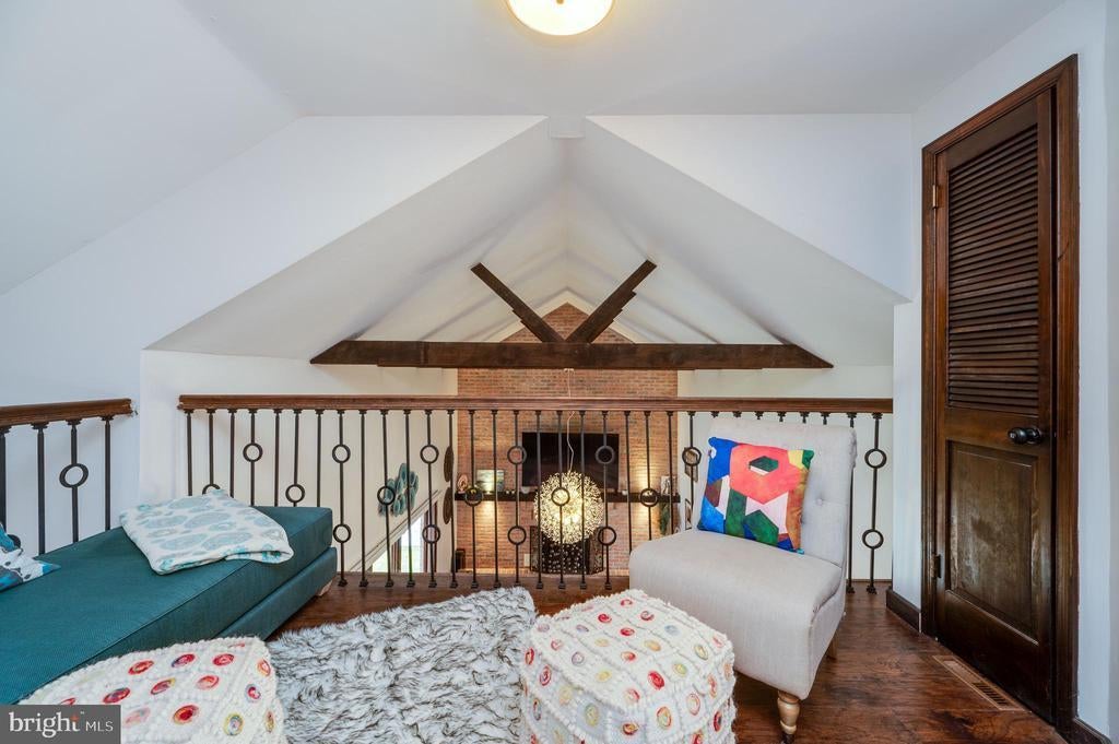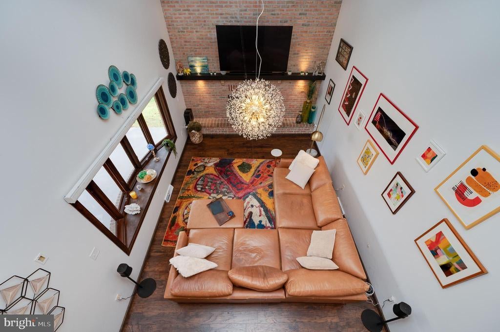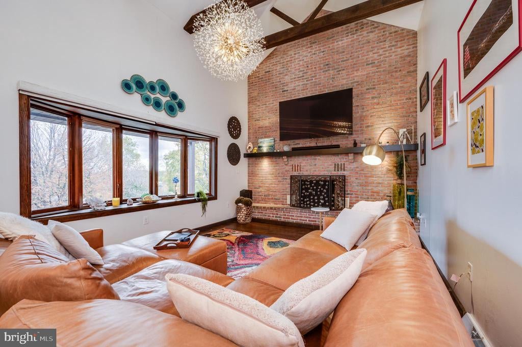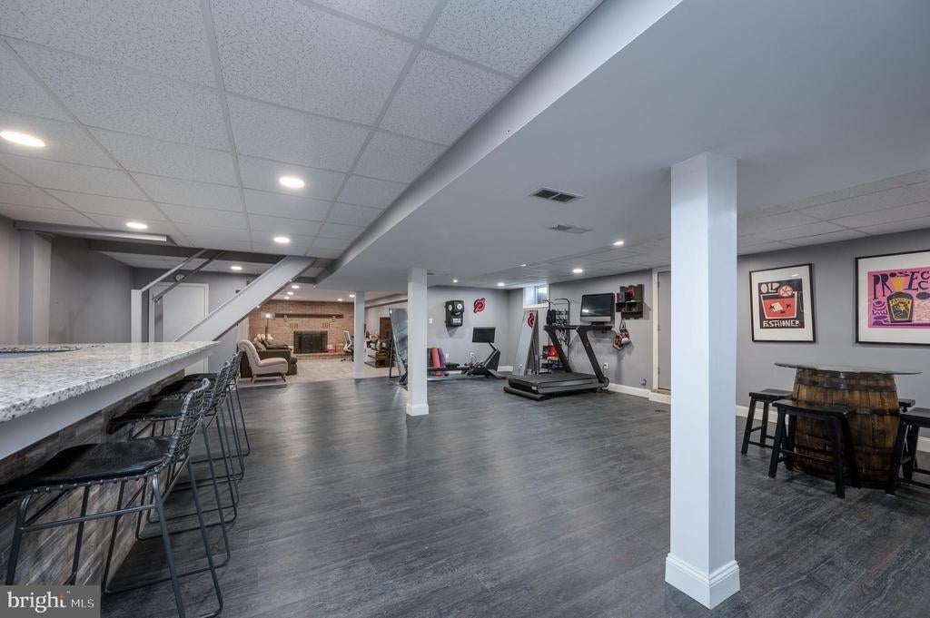 This stunning four-bedroom, three-and-a-half-bathroom home with finished basement showcases exceptional character and meticulous attention to detail following a comprehensive renovation. The welcoming great room features soaring ceilings, exposed wood beams, and a floor-to-ceiling brick fireplace, complemented by gorgeous lighting and a large bay window that floods the space with natural light. The main floor primary bedroom offers a spa-like retreat with an updated bathroom featuring a walk-in tiled shower and single vessel vanity with tile-to-ceiling backsplash. The updated white kitchen boasts granite countertops, stainless steel appliances, and stylish tile backsplash, flowing seamlessly into the dining area with sliding glass doors overlooking the backyard. A second large main-floor bedroom provides convenient access to a patio with backyard views, while an updated full bathroom and laundry room with sliding barn doors complete the first level. The striking staircase with wrought iron spindles leads to a second-floor sitting area that overlooks the great room below, plus two additional spacious bedrooms with ample closet space and an updated full bathroom. The fully finished basement is an entertainer's dream, featuring carpeted areas with a brick fireplace, LVP flooring, dedicated gym space, and a custom stacked stone and granite bar with six stools. A convenient half bath completes this level. Additional features include a two-car garage and gorgeous front porch views. This one-of-a-kind home perfectly blends modern updates with distinctive architectural elements, creating a truly exceptional living experience. Home has been appraised and is listed at the apprised value!