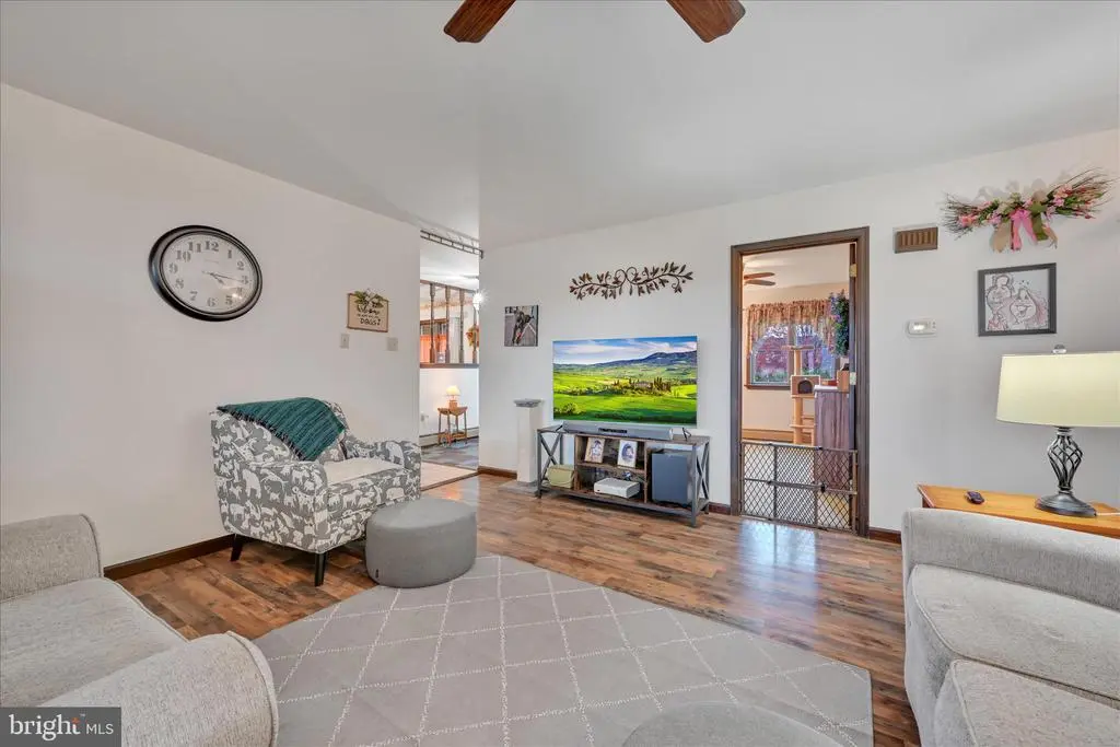 One floor living at its best! This well kept rancher offers 3 bedrooms, a full bath plus 2 1/2 baths, an oversized garage and views that can't be beat! The kitchen offers granite countertops and a unique seating area. The views are breathtaking from any location in the house. A huge bonus is the finished area with a split unit located behind the garage. This could be office space, work shop, hobby room, whatever the need may be. Currently being used for grooming dogs. The basement offers a finished area plus a 1/2 bath and storage space. This home offers .88 acre lot in a beautiful country like setting. There is a shed for extra storage space plus a fenced in yard.