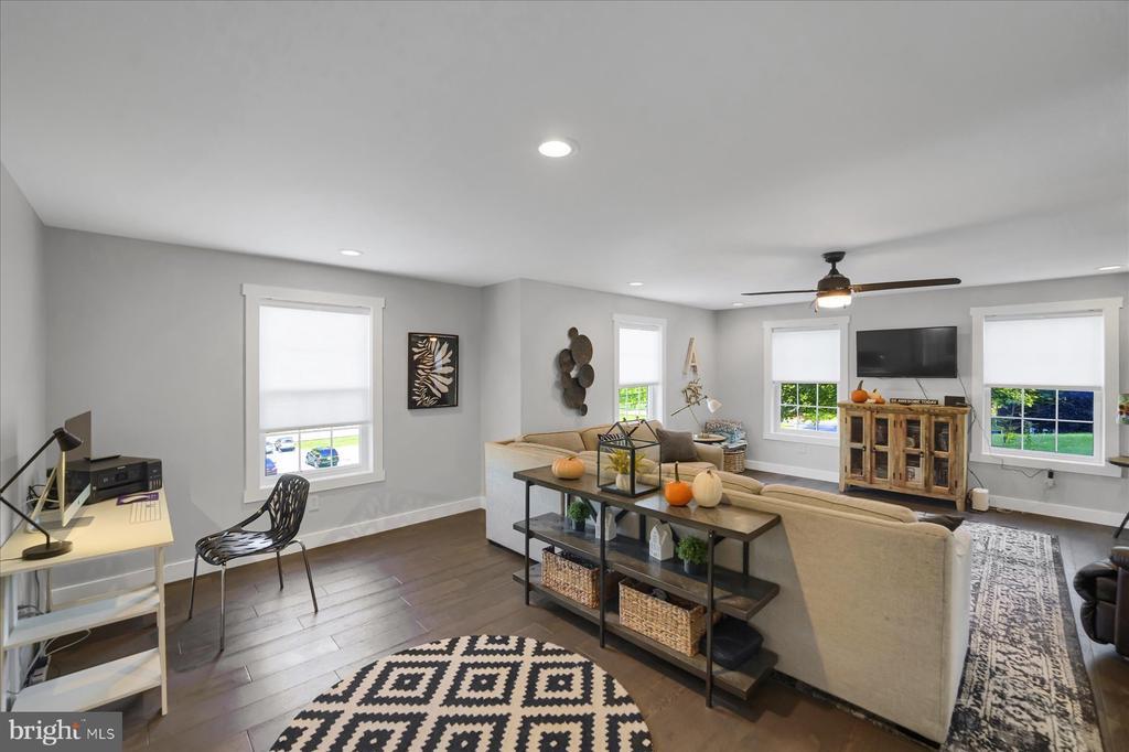 This meticulously remodeled and expanded 2 story residence offers inviting curb appeal, featuring a covered front porch with picturesque views of the surrounding mountains. The rear of the property boasts scenic woodlands and unique, regionally rare plantings, complemented by an attractive stamped patio for relaxation. Upon entry, a spacious foyer provides a convenient built-in cabinet and ceramic tile flooring. The hallway leads to a lovely half bathroom. To the right, a versatile room is suitable for use as an office, family room, den, or other purposes. On the left, the bright living room with spacious coat closet, seamlessly connects to an expansive dining area, which includes double doors opening to the patio and backyard. Adjacent to the dining area, the kitchen is equipped with modern cabinetry, an island, and newer appliances. A well-designed laundry/mudroom is located off the kitchen, enhancing household convenience. The second floor is accessed from the front staircase. At the top, to the right, there is a well-lit bedroom with a dormer window and ample natural light. A full bathroom is situated at the landing. To the left, a flexible bonus area currently serves as a playroom but can be adapted for various needs. Further along the hallway is a generously sized second bedroom with a large closet. The primary suite is located at the front of the home, featuring a private bathroom and substantial storage space. This property combines comfort and functionality with close proximity to numerous amenities and represents an exceptional opportunity.