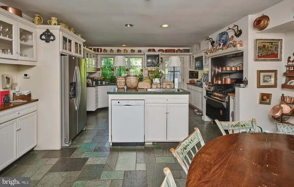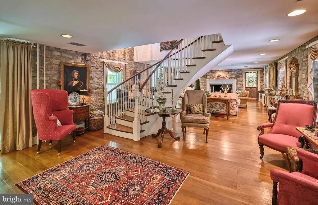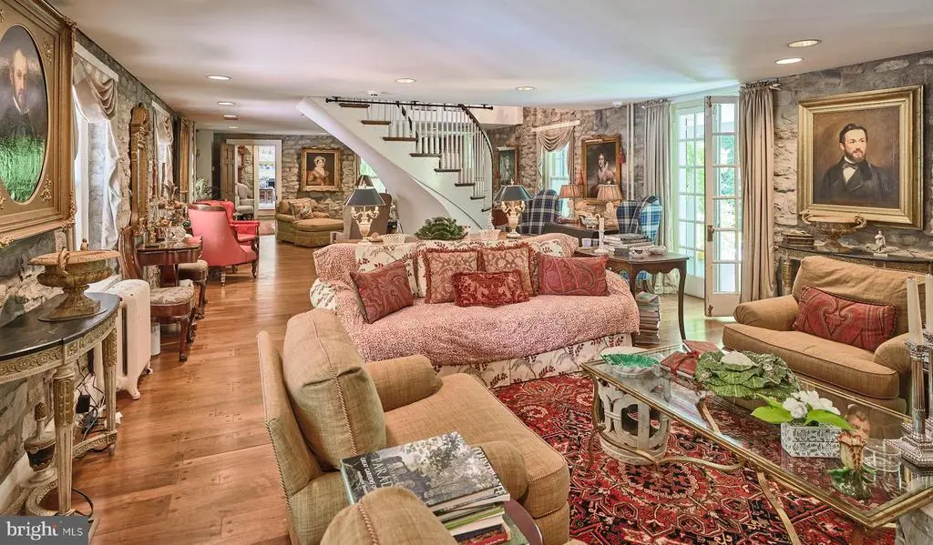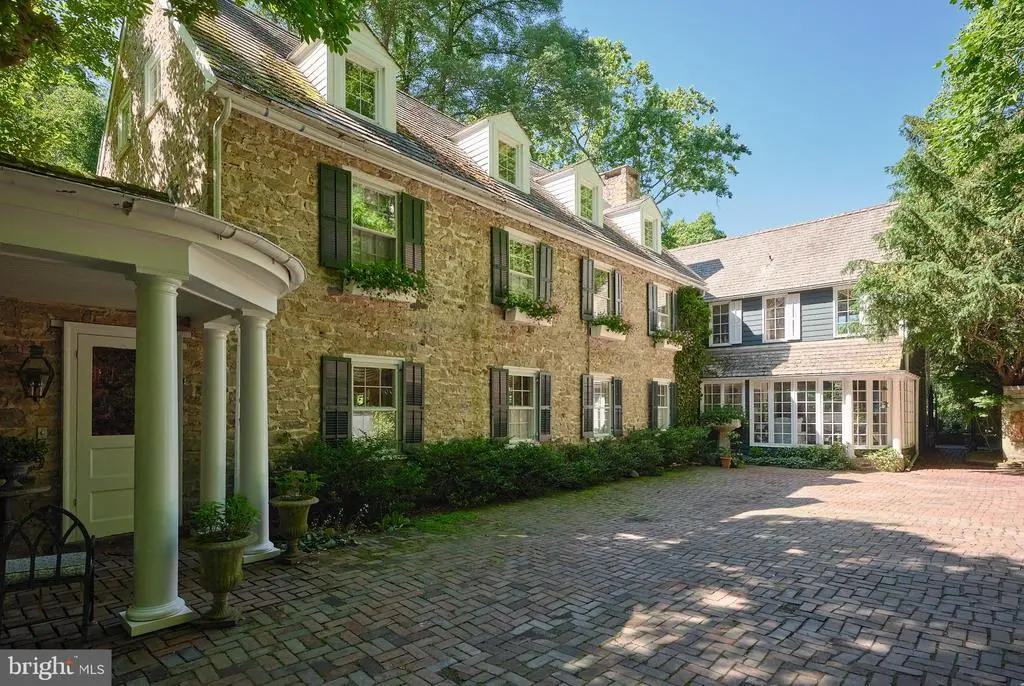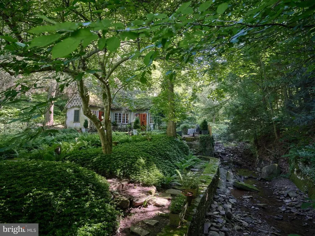 Buckshire, a sophisticated reproduction of a proper Cotswald County Estate. The 6 bedroom, 4.5 bath home is sited among lush landscaping, esteemed gardens and walking paths and a vibrant waterfall against stone walls. This property has a unique pedigree because it was frequently visited by Julia Child. The home belonging to her husband's brother was the site of her wedding reception and, it is rumored, that many of her early recipes were first executed in the existing kitchen. One of the more stunning aspects of the interior is the large, open concept Great Room with a centrally located curved staircase that acts as a nucleus. The ornate details…polished flooring, French doors, period fireplaces and custom woodworking, all work, cumulatively, to form a stellar environment. The kitchen is full of light and contains a glass solarium that acts as a Breakfast Room. The bedrooms are located so that the primary suite is private and important. A short walk from the home is the guest cottage. This one bedroom cottage is the perfect location for guests, relatives or a writer’s studio. Deep in the gardens is an architectural folly that appears as ruins, at first, but then emerges as the perfect venue for al fresco dining. This folly, looks out at the pool and a walking bridge that gives one a wondrous view of the waterfall. The remnants of a tennis court has developed into a sunken garden or large outdoor entertainment space. Buckshire is a home with a provenance that captures the imagination of those immersed in a Charlotte Bronte novel and the interior will captivate those who expect the finest. Walking distance to Lumberville. Only 90 minutes to N.Y.C.