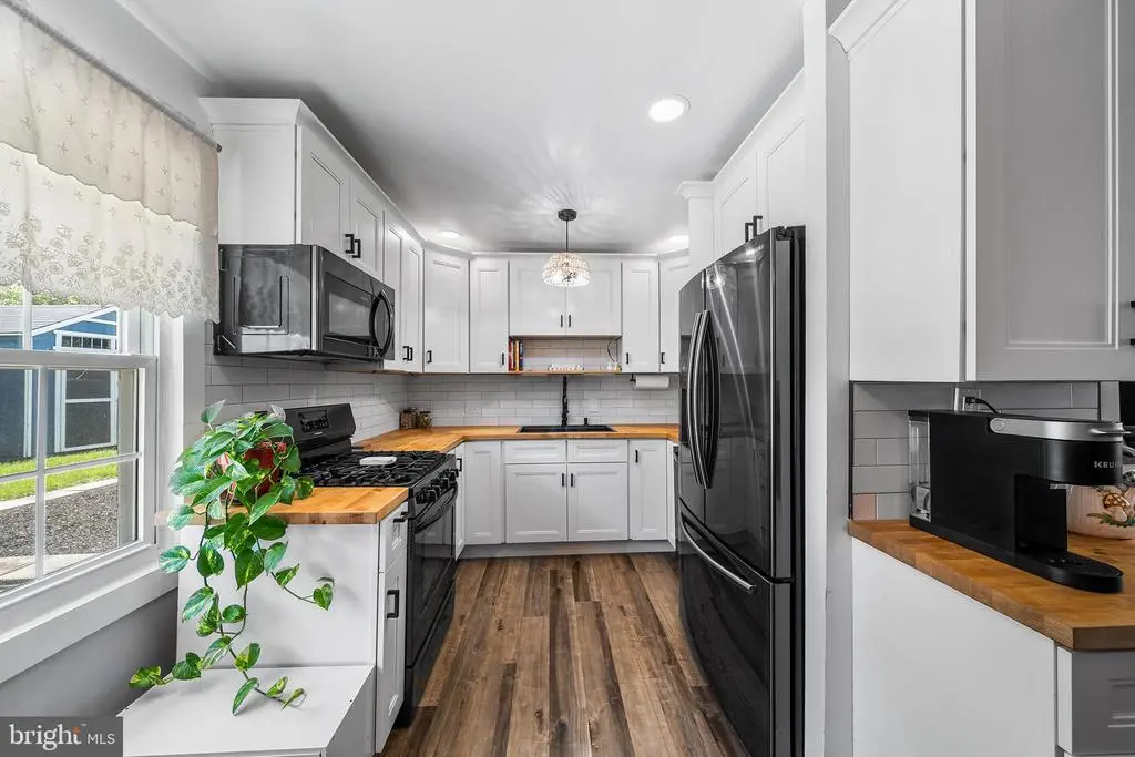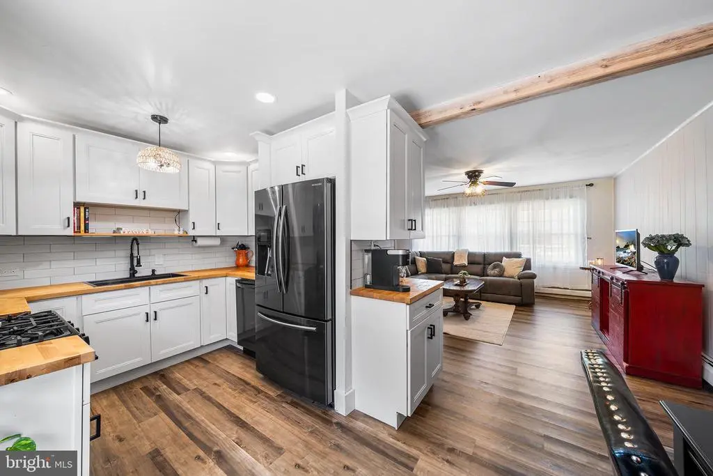 Welcome to this move-in ready home tucked away on a quiet street in the desirable Indian Creek neighborhood of Levittown. Inside, you’ll find a spacious family room with luxury vinyl floors that flow seamlessly into the newly remodeled kitchen and dining area. The bright, airy kitchen is a true showpiece - complete with stainless steel appliances, white shaker cabinets, butcher block countertops, a farmhouse sink, and a built-in coffee station or bar for extra storage and prep space. Just off the kitchen, the laundry and utility room offers direct access to the backyard and patio, as well as interior entry to the garage. A standing-room attic above the garage provides excellent storage or the potential for future expansion. The main level includes two versatile bedrooms - ideal for a primary suite, guest room, or home office, plus a full bath. Upstairs, you’ll find two additional bedrooms with generous storage and another full bath. Step outside to your private, fenced-in backyard, perfect for entertaining or relaxing. Enjoy the above-ground pool with sun deck, cozy fire pit area, and well-maintained shed for all your storage needs. Recent upgrades include: New electric garage door (2024) New storm door (2024) Soffit, fascia, and gutters replaced (2024) Additional highlights include natural gas heat (a rare find in Levittown) and a double driveway for plenty of off-street parking. Don’t miss your chance to own this beautifully updated home in one of Levittown’s most desirable neighborhoods, schedule your showing today.