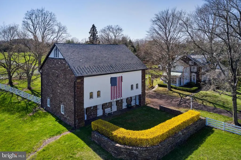If you are seeking a true Bucks County Estate rich in history and elevated for todays living, then this is it! Overlooking picturesque Cabin Run Creek and bucolic farmland this Bucks County estate dates back to Circa 1785, a rare offering— restored and expanded set on over 12.5 acres of rolling and open land on a postcard setting! At its heart is a magnificent 4 bedroom stone farmhouse, where original character meets refined country living. Rich with exposed stone walls, antique beams, and bespoke craftsmanship, the home opens to a series of inviting outdoor spaces—stone terraces, a walled courtyard, a serene pool setting and gardens bordered by dry-laid stone walls throughout. Ancillary structures include the main barn with radiant-heated, finished lower-level barn currently used as an entertaining and office retreat , but would also make a signifiant studio space for an artist, designer or can easily be converted back to a working barn with Dutch doors that open to pastoral views. Endless possibilities, with kitchen and full bath. Additionally a separate oversized 3 car garage with 2 bedroom, light and airy full service carriage house. An additional 24+ acre parcel—unpreserved with its own separate road access is available for purchase. This land offers remarkable potential for equestrian pursuits, farming, pasture, or the creation of a second residence. A setting of rare beauty and privacy, this is more than a home—it is a generational estate in one of Bucks County’s most picturesque valleys. Close to Philadelphia, Doylestown and close proximity to all amenities and I 78. An impressive Country Estate!