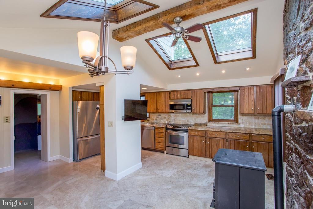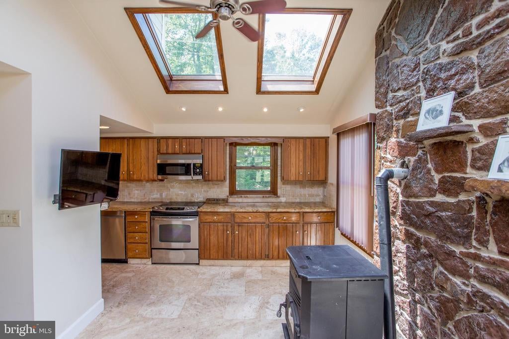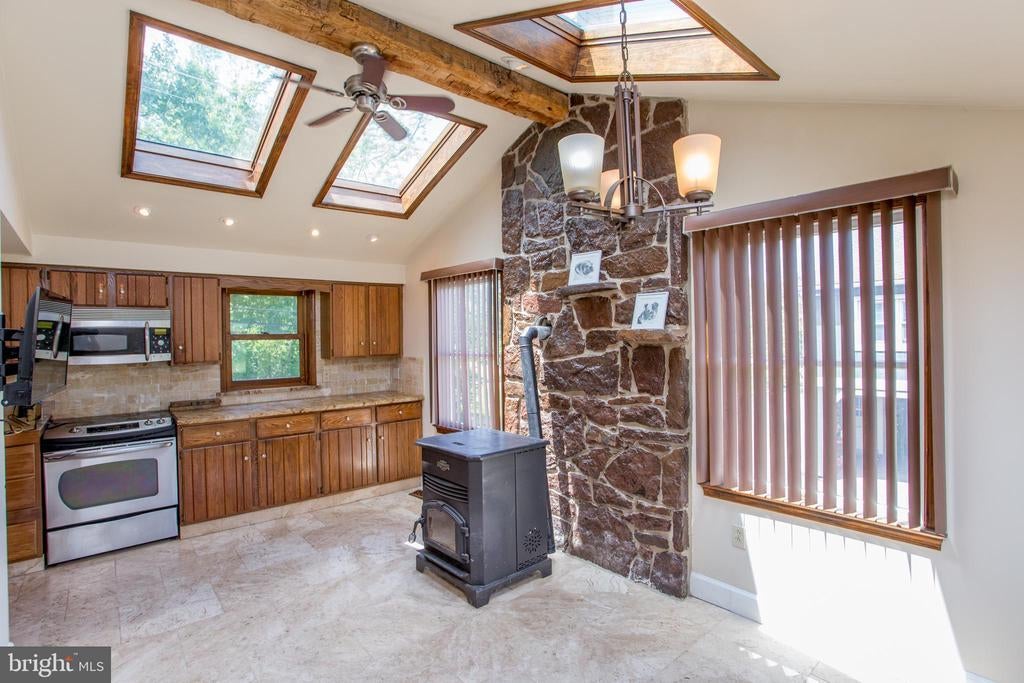 Built-Ins, Exposed Beams, Skylight(s), Stove - Pellet
