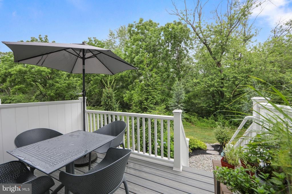 Luxury Toll Brothers Townhome – Premium Upgrades Throughout. Set on a fully landscaped lot in the award-winning Central Bucks School District, this 3-bedroom, 3.5-bath home features a fully finished basement and interior designer curated finishes.Flooded with natural light enter a two-story foyer and immediately notice the refined atmosphere with 3 Herman Miller Pendant Lamps. Large windows create a sunlit great room- kitchen, living, and dining areas with high ceilings, custom feature walls and an expanded chef’s kitchen outfitted with a marble backsplash, upgraded cabinetry, under cabinet lights and premium appliances. Large sliding doors open to a private deck, where you can enjoy peaceful mornings in a meticulously landscaped oasis built for maximum privacy. Powder room fully renovated from builder grade with new vanity, feature tiles, backlit mirror and premium fixtures- a true gem!. Upstairs includes a wood floor throughout. The expansive primary suite boasts a fully finished grand walk-in closet, large spa bathroom with statement tile and modern fixtures. Two additional bedrooms offer custom closets and the updated second bath and laundry room feature high-end finishes and built-ins. Both upstairs bathrooms have upgraded custom shower doors and shower fixtures. A custom library nook adds a touch of sophistication.The fully finished basement provides multiple living areas and a designer full bath, perfect as an additional bedroom or in-law suite.Owners spared no expense! Additional highlights include a two-car garage with epoxy flooring, Lutron dimmers in all rooms for ambiance lighting, automated Hunter Douglas shades, custom Container Store closets, premium designer lighting, and an underground sprinkler system. Every detail was curated by a professional interior design firm.