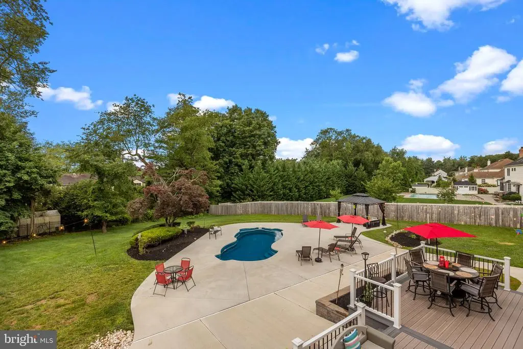 Welcome home to this incredible 4 bedroom home with amazing backyard pool, located in the highly desirable Makefield Ridge community of Yardley. Boasting over 3700 sq ft of versatile living space and set on an acre of land, this home offers the perfect blend of style and comfort with functionality. An impressive loop driveway guides you to the front entrance, where radiant sunshine welcomes you into the grand foyer adorned with soaring ceilings and a striking statement chandelier. Your foyer is flanked by a formal dining room on your left and a spacious living room that is filled with natural light from large windows and adjoins a versatile bonus room—perfect for a cozy sitting area or playroom. Continue to your beautiful eat-in kitchen designed for culinary enthusiasts, featuring a large center island for added counter space, upgraded countertops, sleek stainless steel appliances, stylish tile backsplash, ample cabinet space and sliding door access to your backyard deck for seamless indoor/outdoor entertainment! The attached laundry room features a large pantry closet for the highly sought after added food storage and convenient access to both your attached garage and backyard. Just off the kitchen, the inviting family room is ideal for relaxing with family and friends, showcasing a cozy wood-burning fireplace, a built-in wet bar and direct access to your covered outdoor patio! A convenient coat closet and powder room complete this floor. Upstairs, you'll find four spacious bedrooms, all with plush carpeting and recessed lighting and a full hallway bathroom featuring a dual sink vanity and tub/shower combo with sliding glass doors. The luxurious primary suite is a true retreat, complete with a sitting area, updated private terrace overlooking your tranquil backyard, walk-in closet, built-in marble countertop vanity area with sink, and a spa-like ensuite bathroom featuring both a soaking tub and stall shower to suit every preference! Your fully finished basement expands your living space and offers a separate room ideal for a home office, game room or even gym! An additional unfinished section offers added storage. Step outside to your private, tree-lined backyard oasis—an enchanting outdoor retreat surrounded by lush, mature landscaping that offers both beauty and seclusion. Take a refreshing dip in your fiberglass in-ground pool or unwind beneath the charming gazebo. Savor your morning coffee on the low-maintenance Trex deck and enjoy effortless outdoor dining under your spacious covered patio—perfect for entertaining or relaxing in style all year round. Additional upgrades include two-zone heating and air conditioning, NEW roof, NEW Trex Deck, NEW pool system, and a spacious 3-car garage! Ideally located close to a variety of shopping and restaurants and Yardley Boro offering the canal path for outdoor adventures yet near I 295 and the Yardley Train station for easy commuting! Pennsbury school district too! Don’t miss your opportunity to tour this beautiful home! **Seller is also including a one-year home warranty to the future buyer**