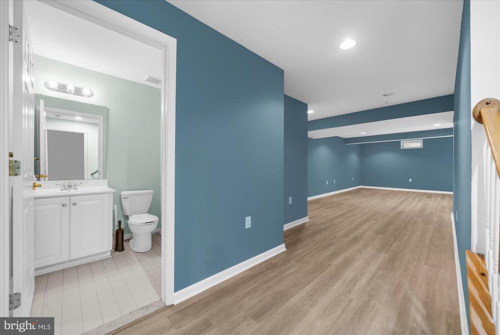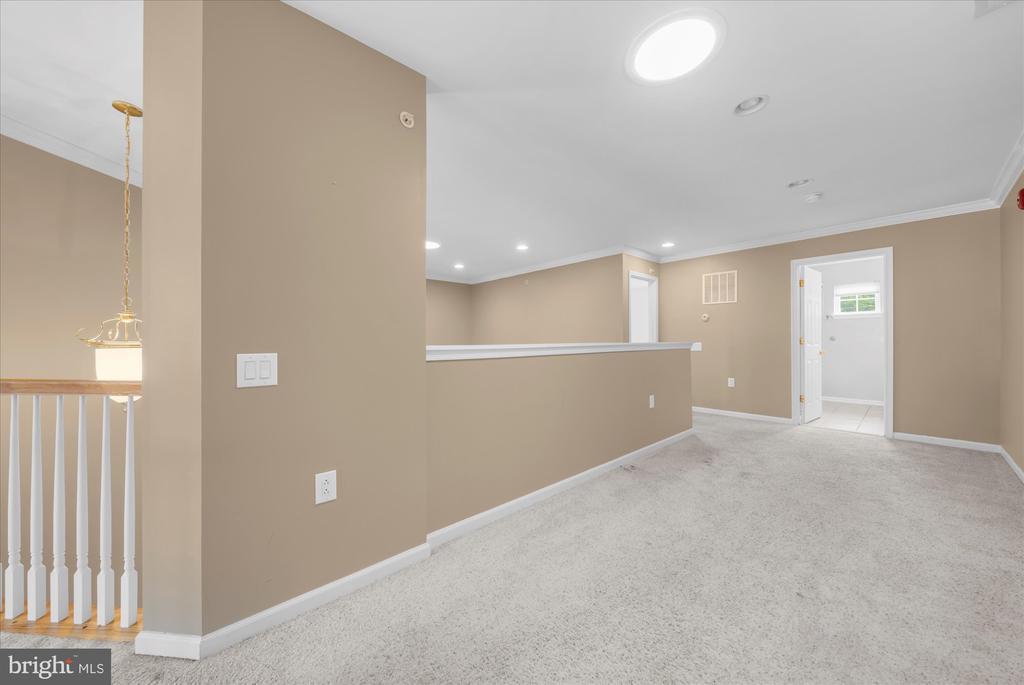 Welcome to this stunning upgraded home featuring soaring 18-foot ceilings and abundant natural light, highlighted by two skylights—one in the dining room and another upstairs. Durable laminate flooring flows through the open-concept main level, connecting a spacious family room, elegant dining area with wainscoting, and a chef’s kitchen with custom cabinetry, pull-out pantry shelves, and access to a private deck with an electronic retractable canopy—perfect for outdoor entertaining. The main-floor primary suite includes a double-vanity en-suite, walk-in closet, and built-in storage. The attached garage offers added organization with custom shelving. The fully finished basement boasts a large living area, bonus room ideal for an office or guests, a half bath, and a laundry room with full-size washer and dryer. Upstairs, you’ll find two generously sized bedrooms—one with a walk-in closet—and a full bath with double sinks, plus the second skylight bringing in even more natural light. Offering 3 bedrooms, 2 full and 2 half baths, this move-in-ready home in a desirable 55+ community combines comfort, flexibility, and thoughtful upgrades throughout.