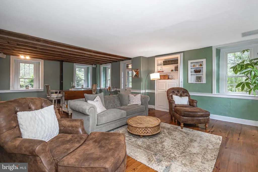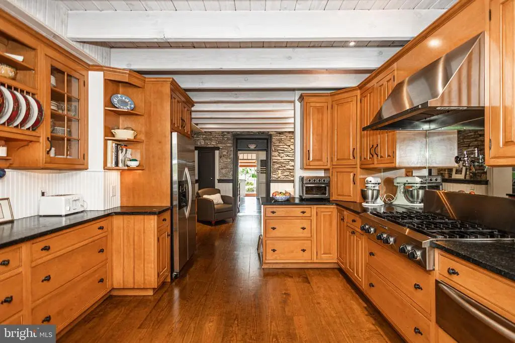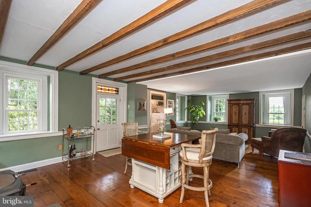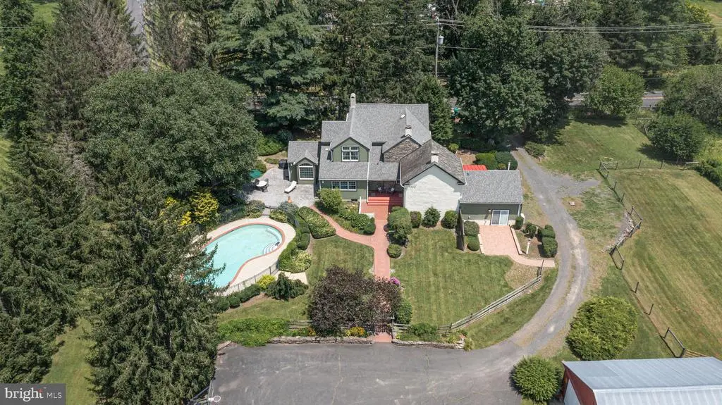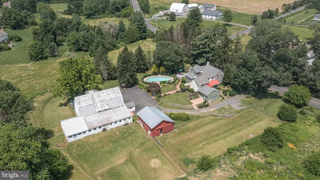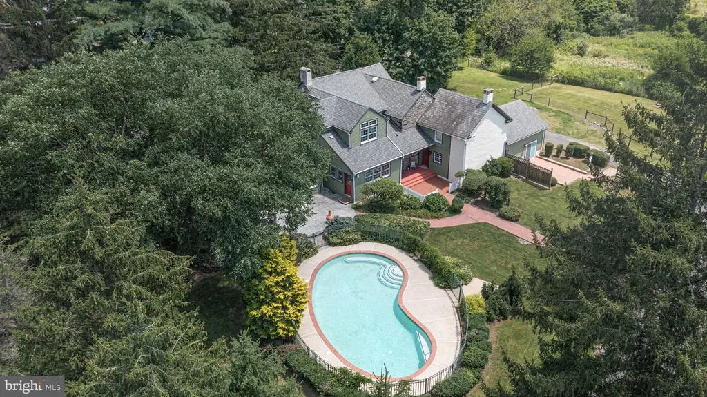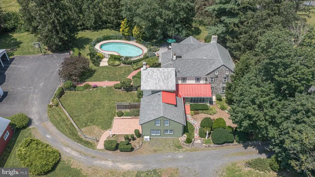 Welcome to Maplewood Farm, an expansive stone farmhouse dating back to 1792, thoughtfully restored and situated on over 5 serene acres in Pipersville, PA. The main 5 bed residence features formal living and dining rooms with charming built-ins, open rafter ceilings, cozy large gathering room, with wood burning stove, enclosed sun porch, renovated kitchen with soapstone counters, upgraded appliances, generous custom cabinetry including homework nook, and original wide-plank pine flooring, Vaulted breakfast room with views of the pool, patio, and grounds, Spacious mud/laundry room with built-ins and farmhouse sink, Master suite with sitting room , walk-in closet and updated bath. In addition to the 2 additional bedrooms on the second floor, there is as an added bonus: a 1,600 sq ft apartment with 2 bedrooms and 2.5 bathrooms—easily incorporated into the main residence for additional living space for family members. Outside you will enjoy private patios, fenced pastures, a pool and long-range views, 2-story Bank Barn with water/electric—ideal for livestock; additional barn perfect for Gym, storage, workshop, or home business, a smaller barn for your chickens.