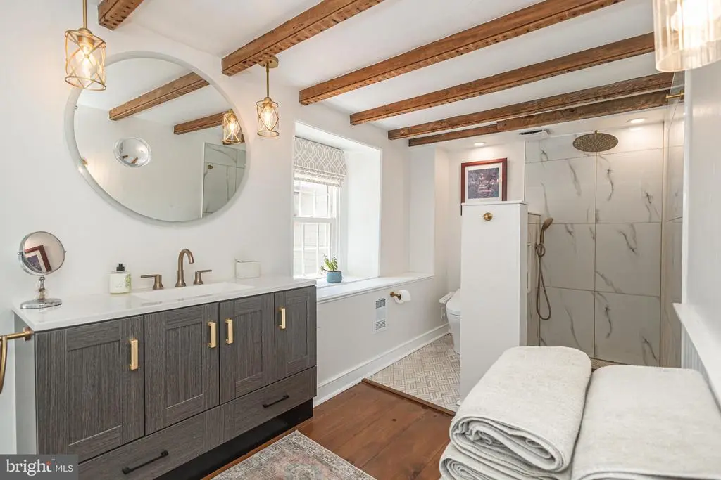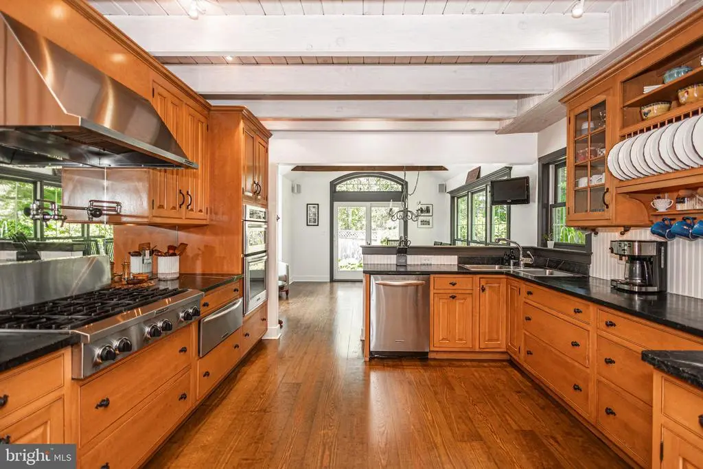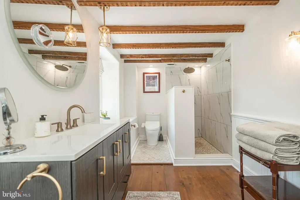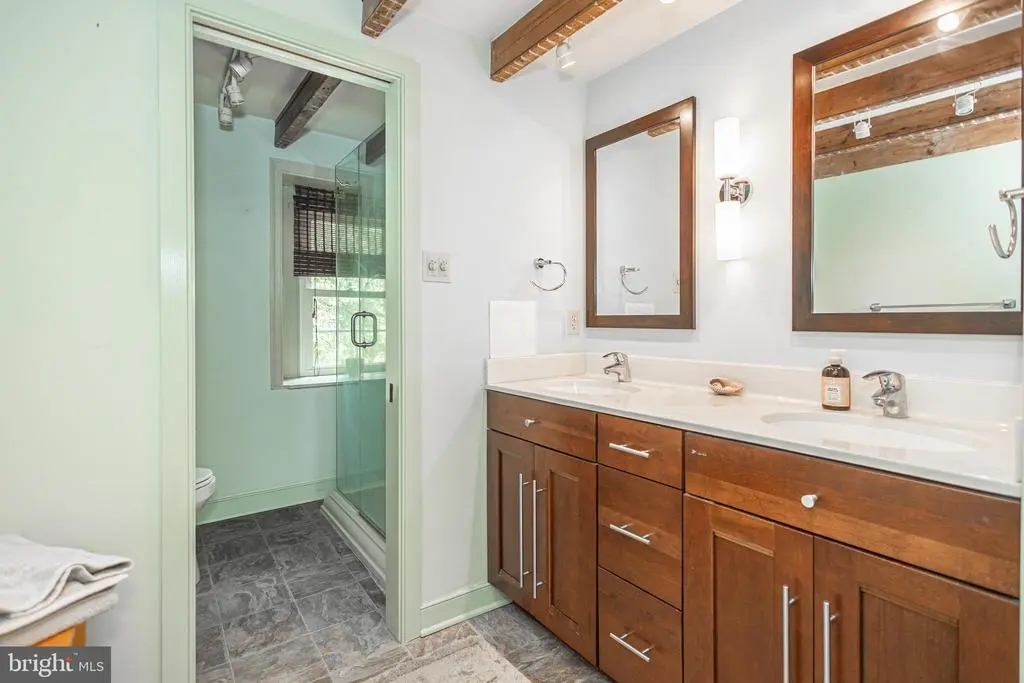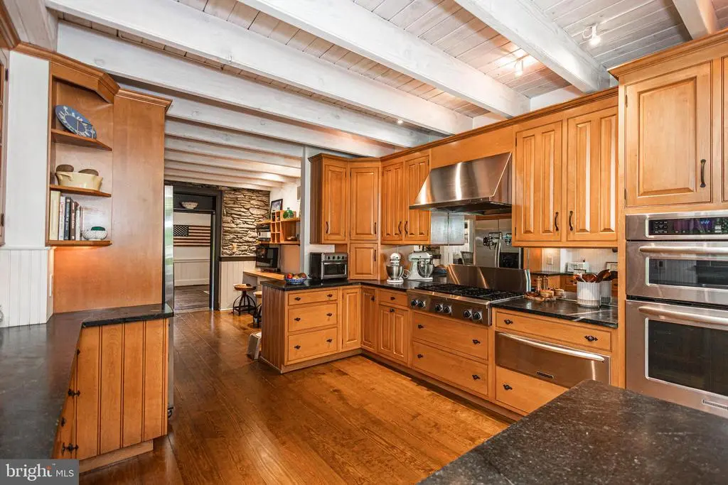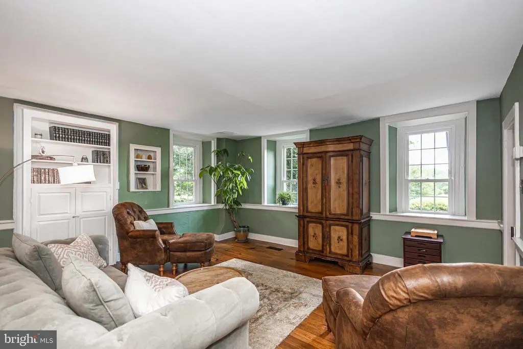 Welcome to Maplewood Farm, an expansive stone farmhouse dating back to 1792, thoughtfully restored and situated on over 5 serene acres in Pipersville, PA. The main 5 bed residence features formal living and dining rooms with charming built-ins, open rafter ceilings, cozy large gathering room, with wood burning stove, enclosed sun porch, renovated kitchen with soapstone counters, upgraded appliances, generous custom cabinetry including homework nook, and original wide-plank pine flooring, Vaulted breakfast room with views of the pool, patio, and grounds, Spacious mud/laundry room with built-ins and farmhouse sink, Master suite with sitting room , walk-in closet and updated bath. In addition to the 2 additional bedrooms on the second floor, there is as an added bonus: a 1,600 sq ft apartment with 2 bedrooms and 2.5 bathrooms—easily incorporated into the main residence for additional living space for family members. Outside you will enjoy private patios, fenced pastures, a pool and long-range views, 2-story Bank Barn with water/electric—ideal for livestock; additional barn perfect for Gym, storage, workshop, or home business, a smaller barn for your chickens.