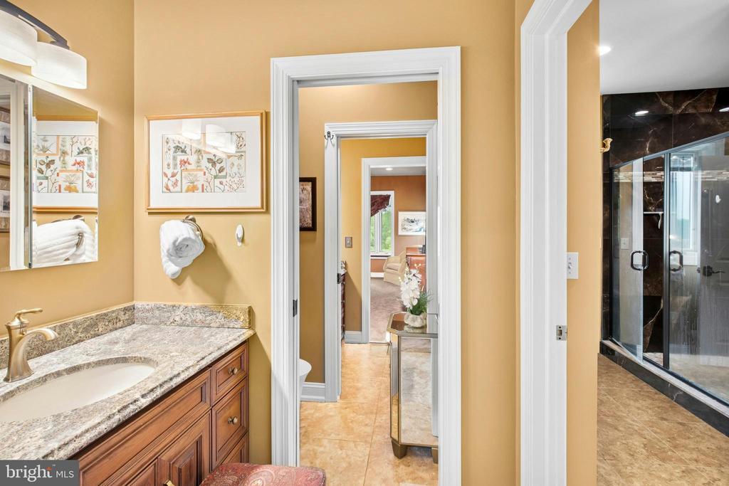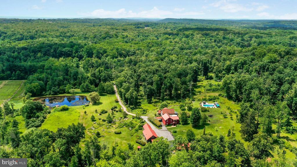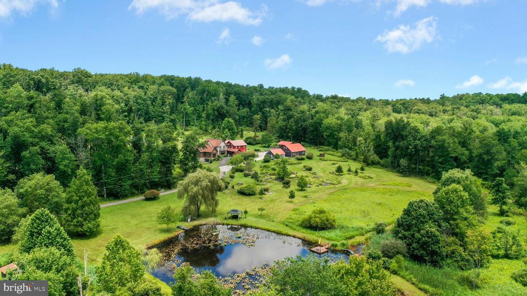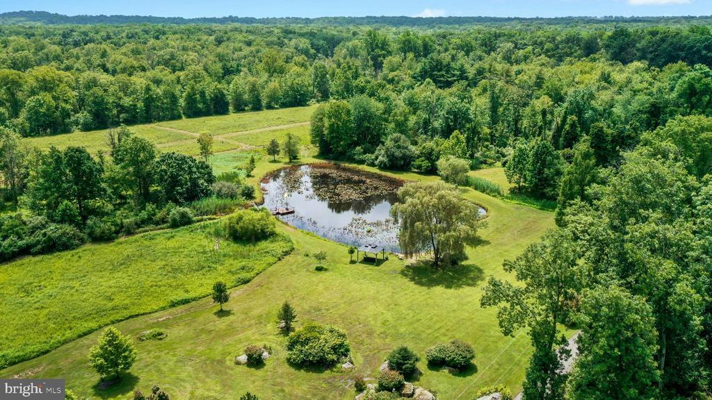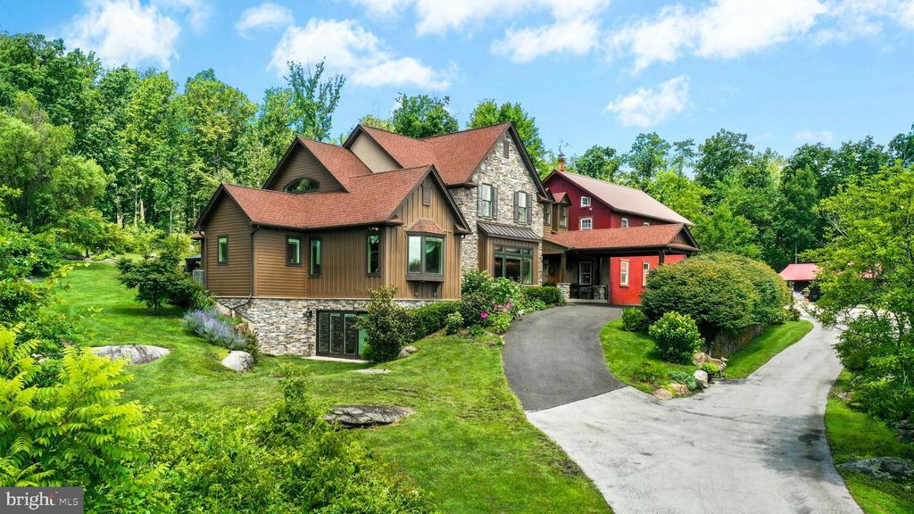 Set at the end of a long gated driveway amidst 65 open and wooded acres Boulder Ridge Farm has been reimagined into a rare multi-generational compound where 1890s Bucks County history and the 21st century blend harmoniously. A fully individual 3 to 4 bedroom home with all the modern conveniences was masterfully crafted in 2019 by Monogram Custom Homes and attached to the original classic 5 bedroom Bucks County farmhouse to create dual homes that are perfect for families who want separate spaces but proximity. Floorplans available at https://my.homediary.com/story/484610/u The ultra-efficient modern home has been crafted with an eye for detail and extraordinary building practices. A two story foyer flows into an open floor plan framed by detailed moldings and heated wood floors. The heart of the home is a stunning kitchen with granite countertops, walk-in pantry, island and side by side Wolf induction ranges with copper pot filler. Additionally, a built-in Miele coffee station, Fisher and Paykel dishwasher drawer and SubZero refrigerator ensure the chef will have all amenities at their disposal. Steps away from the kitchen is an elegant great room with coffered ceilings, triple window with built-in bench seat, gas fireplace flanked by floor-to-ceiling cabinetry and display shelving. A dining room also enjoys heated wood floors. The adjacent sun/sitting room has a vaulted ceiling with skylights, a picture window and glass doors to the bluestone patio. This home has a sought after main floor primary suite and 2nd bedroom or office. The walk-in closet is outfitted with beautifully crafted custom wood cabinetry and built-ins. A spa bath luxuriously accommodates with a jetted tub, separate granite vanities and water closet, all with heated floors and decadent heated river rock shower floors. The second floor loft hang-out area opens to two large bedrooms with walk-in closets and Jack and Jill bath with granite vanity and double sinks. A walkout lower level, also with heated floors, will continue to amaze with media, game, exercise, and family spaces. A beautifully appointed kitchenette has granite counters, high-end appliances and bar seating, with a full bath just beyond. Glass doors lead to the lawns and outdoor amenities. Not to be outshown by its modern counterpart the adjacent antique farmhouse also has an open and expansive floor plan. An updated kitchen features soft-close cabinetry and granite counters, and is open to the dining room, living room with fireplace and woodstove, and family room all with hardwood floors. The cozy den could also serve as a private home office. Five second floor bedrooms have wood floors and are brimming with charm, including a primary bedroom with en suite bathroom, and hall bath. Enjoy a perpetual private vacation at your own home. Resort-like amenities include a sunsplashed pool complex with a heated inground pool, luxurious hot tub with gazebo, and cabana. A picturesque pond is surrounded by scenic overlooks including a hidden cabin, dock and gazebo, all private and perfectly placed for reflection and repose. A detached oversized 3-car garage has a large second floor storage loft. An equipment garage and pavilion will house tractors and toys and a chicken coop is ready for your family’s flock. Escape from the ordinary and enjoy an exciting future in this versatile property located one hour from Center City Philadelphia. Enjoy the best of Bucks County in a private and tranquil setting.