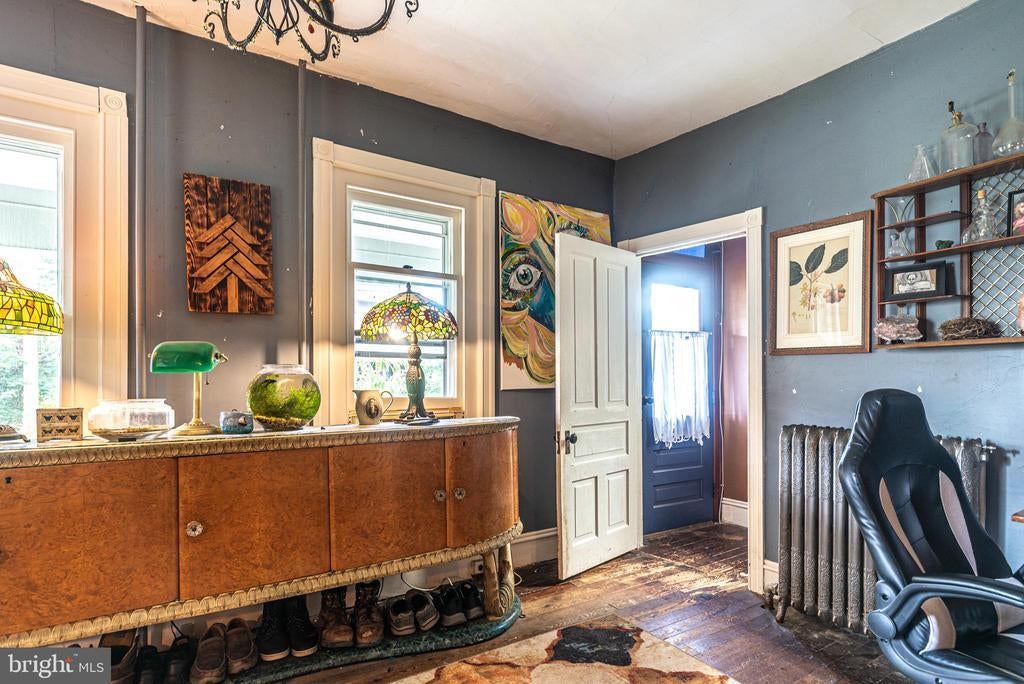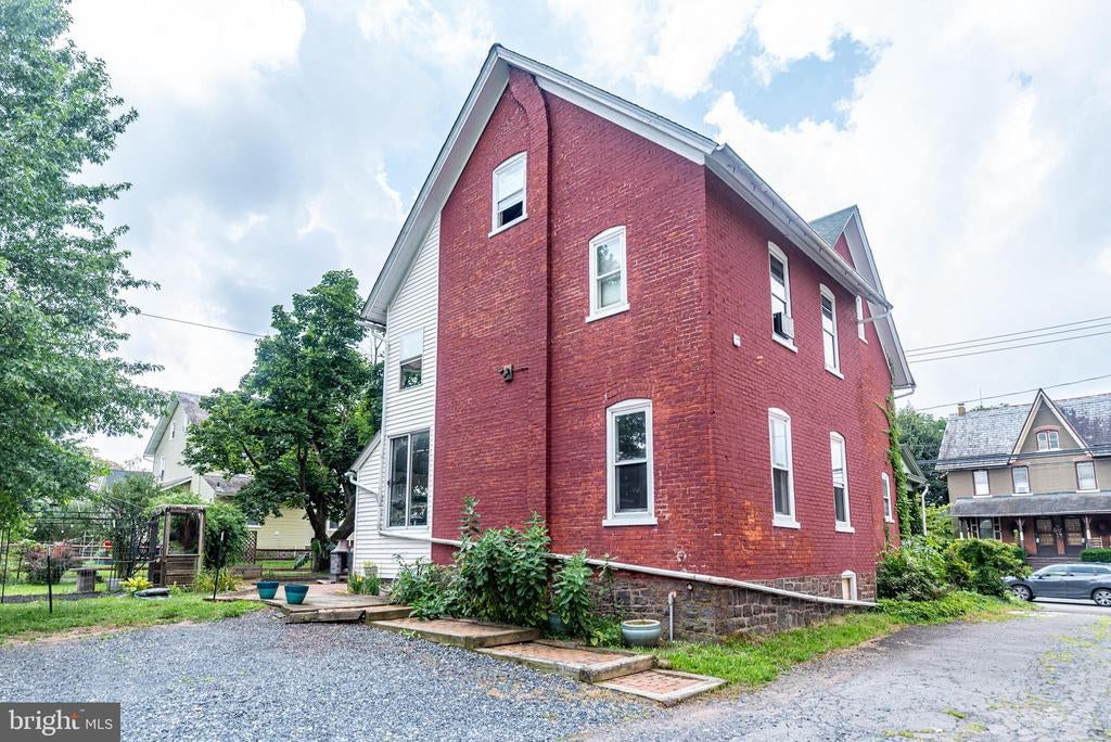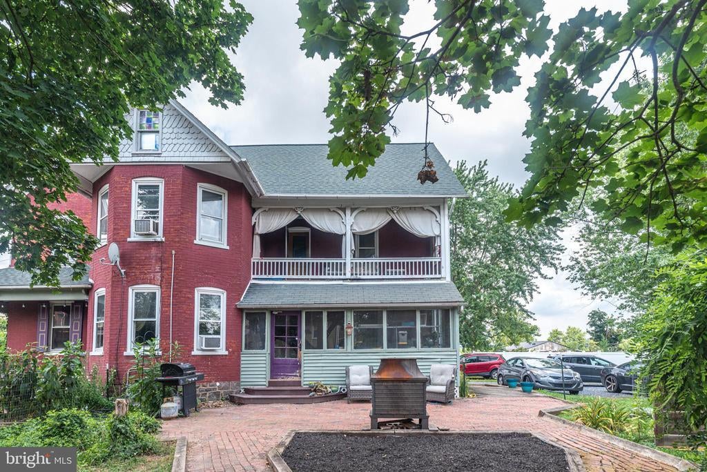 Elegant Victorian with many striking outdoor and indoor features Charming Brick Victorian Retreat in Prime Trumbauersville Location Step into timeless elegance and comfort with this enchanting brick Victorian, where classic architecture meets modern living. A gracious wrap-around porch invites you to enjoy tranquil mornings and relaxing evenings, overlooking a spacious yard adorned with pollinator beds, a delightful butterfly garden, and a lush grape arbor. Multiple outdoor seating areas offer perfect spots to savor the beauty of every season or entertain guests in style. Inside, discover generously sized rooms featuring high ceilings and hardwood floors throughout. The living room and primary bedroom have beautiful bow windows, flooding the spaces with natural light. Charming stained-glass windows add a unique touch of artistry across the home. Distinctive pocket doors allow you to seamlessly separate the living area from a dedicated work or office space, ensuring both productivity and privacy. The home is designed for flexibility and function, boasting both front and back staircases for convenience. Upstairs, four comfortable bedrooms await, highlighted by a spacious dressing area leading to a private balcony retreat. Laundry is cleverly tucked away on the second floor for easy access, while the attic offers open space, an additional bedroom, and endless possibilities for creative use. Ideal for plant lovers and aquarists alike, enjoy a rare indoor pond equipped with an automatic mister — a sanctuary for both fish and flora. There's ample parking with space for four vehicles; all set on a lot that backs up to dedicated park space — your own private oasis in the heart of Trumbauersville. Add your special touches to make it your own. Situated close to local businesses, Route 309, and just 10 minutes from the turnpike, this home offers convenience without sacrificing peace and privacy.