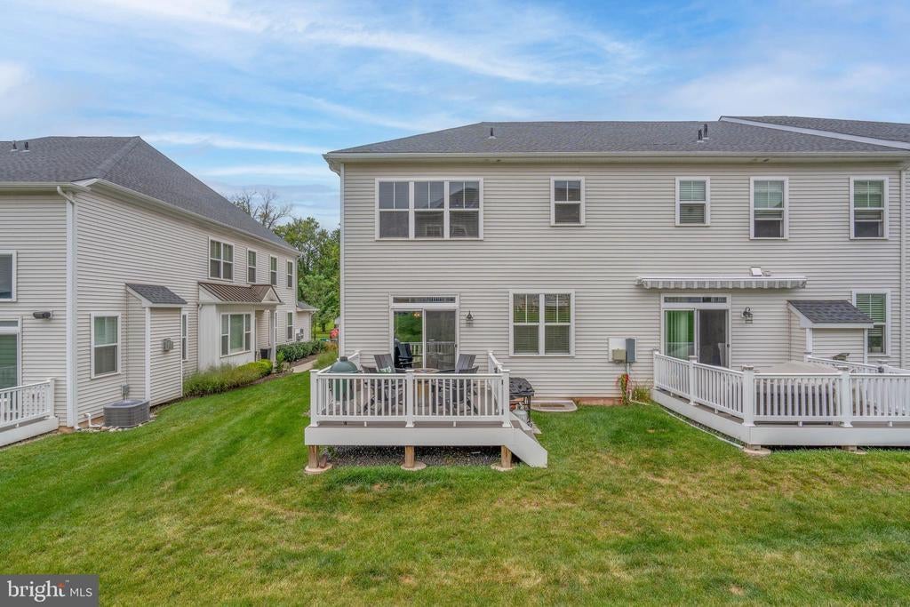 Welcome to a great value at the Reserve at Spring Mill adjacent to the Golf Course. The exquisite turn key Addis Model END UNIT is located on a rare 3 unit row block with numerous upgrades. One of the few units facing green open space. Enjoy the custom gourmet designer kitchen vented stove large seated 10 foot island with a quartz counter top and a deep drop in stainless steel sink overlooking the open concept family / great Room with a gas fireplace . Custom built in bar and foyer closets. Entertain guests via walk through 2 pane sliding door to a gated 12 x 12 composite maintenance free deck with a convenient BBQ pad in rear yard. Easy access to a double garage with an added utility sink, 200 AMP electric car charger, remote door opener and a double insulated steel garage door. The second floor features a primary bedroom with a trey ceiling in suite bath with double walk in closets, and double vanity sinks. Hall bath features a tub / shower, & double sinks. The laundry is conveniently located on the second floor along with 2 large bedrooms with large closets. The basement has a large 9' steel reinforced concrete high pour, emergency walkup exit. The basement has a rough in plumbing for a potential full bath. The excellent modern mechanicals features are; a water supply manifold , water softener , fire sprinkler, 200 AMP, Aprilaire air purification and a water filter reverse osmosis / alkaline systems and a Nest passive/programmable thermostat. All windows have been UV tinted to keep house cool in Summer and for heat retention in Winter.