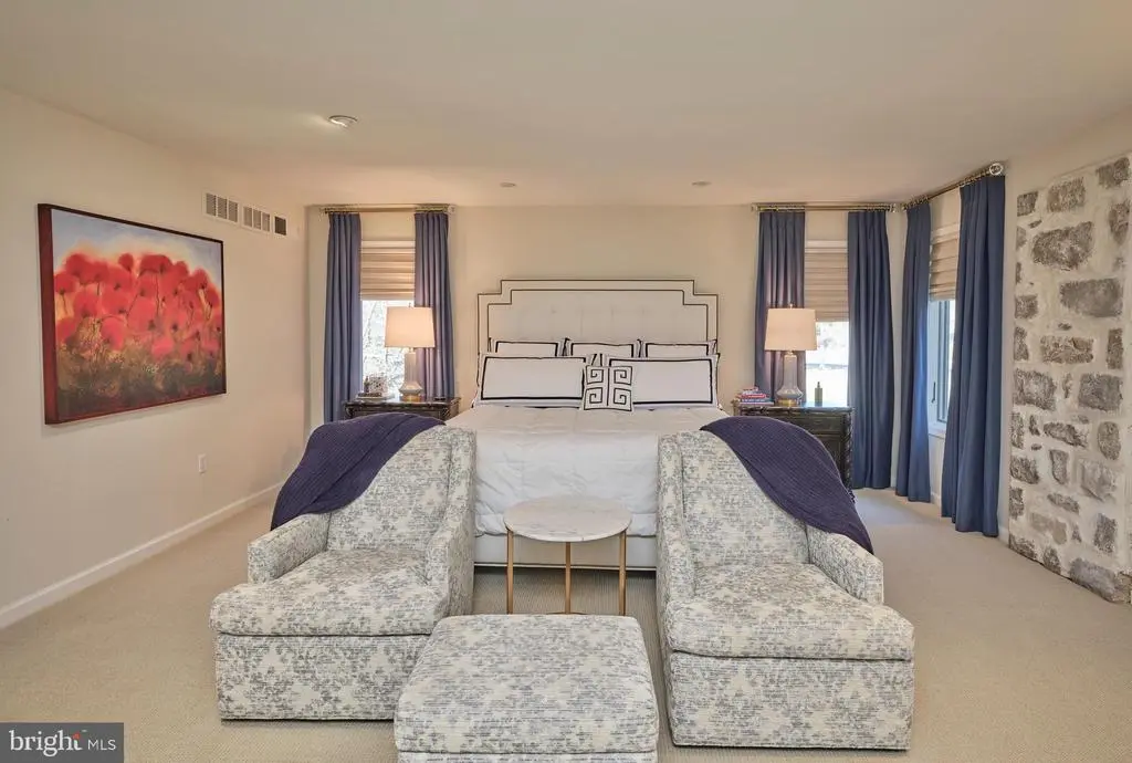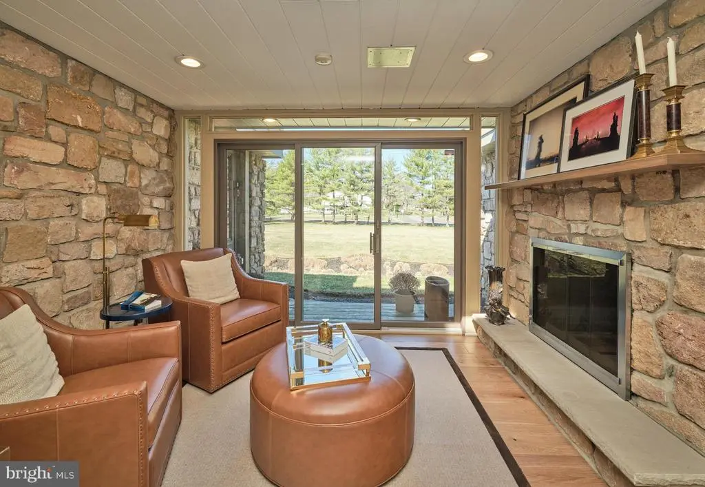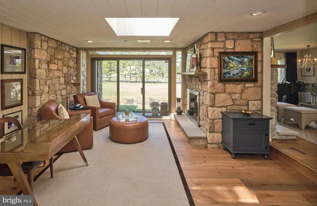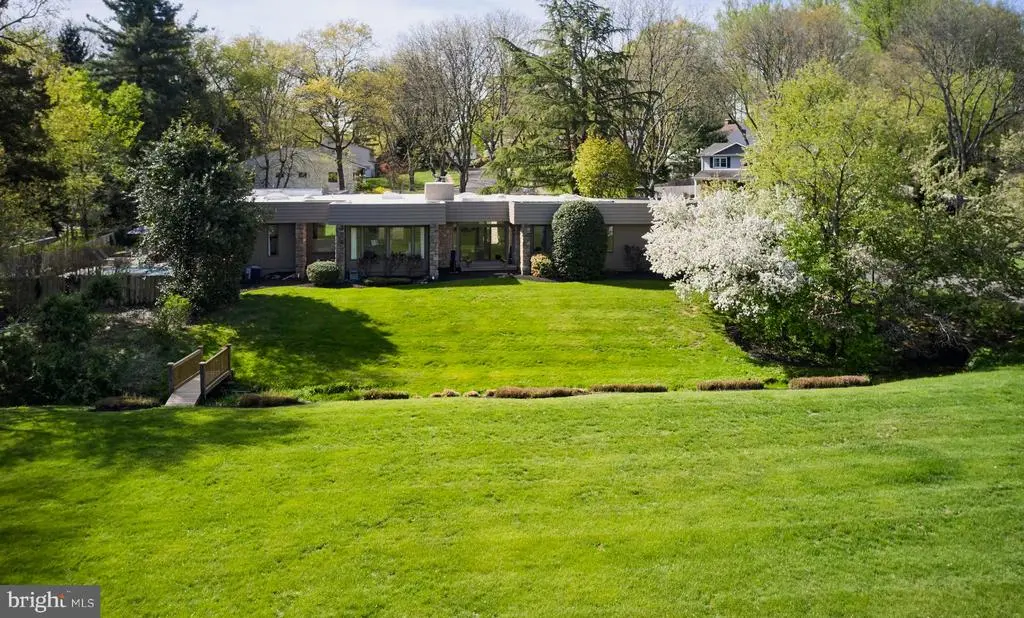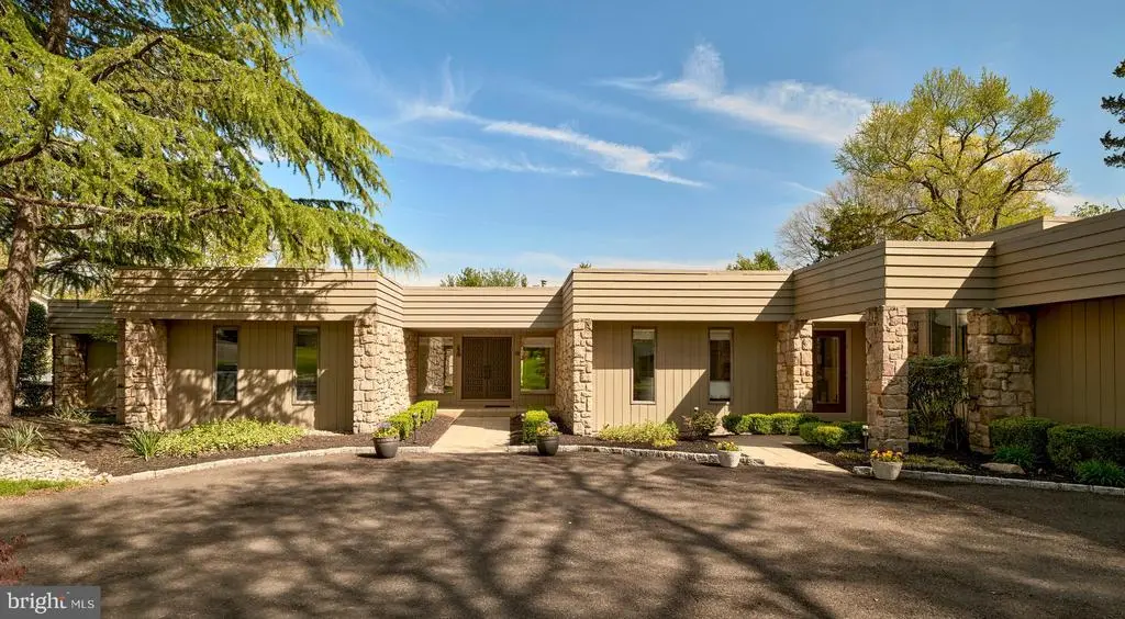 This extraordinary mid-century modern ranch home, newly reinvented, is designed for both luxury and comfort beautifully integrated into a serene, park-like setting. It's bright and airy feel, luxurious amenities, and exceptional outdoor space make it perfect for both entertaining and harmonious living. The open floor plan creates an inviting atmosphere throughout the over 5,200 square feet of living space, allowing for flexible use throughout. Wide plank hardwood floors and picture windows enhance both elegance and natural light throughout the home. Perfect for culinary enthusiasts and entertaining, the gourmet kitchen addition includes state-of-the-art appliances, custom cabinetry, center island and granite countertops. A double-sided fireplace adds warmth and ambiance to the library and living room, while a large dining room and marble bar provide ideal space for hosting - all with captivating views of the rear grounds. An expansive primary bedroom addition includes a luxurious spa bath, a cozy sitting area, and two spacious walk-in closets. There are four additional creatively designed bedrooms and bathrooms, combining style and functionality. The outdoor living space is tailored for entertainment, including a gated in-ground pool and plush lawns. Professional hardscape design and landscaping, complemented by low voltage outdoor lighting, create an enchanting environment ideal for both relaxation and gathering. Set amidst beautiful natural topography, the home offers a sense of tranquility and privacy. This home is particularly well-placed, offering close access to the canal towpath, Yardley Borough renowned pubs, and New Hope Borough - known for its charming riverside dining and theatre experiences. Located conveniently near major cities such as Philadelphia, Princeton, and NYC, making it ideal for commuters and urban lifestyles.