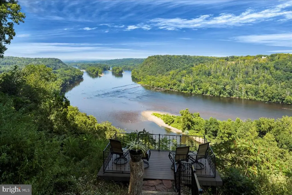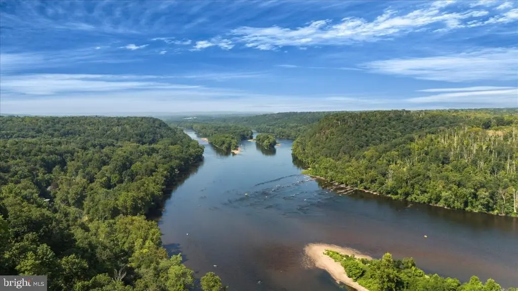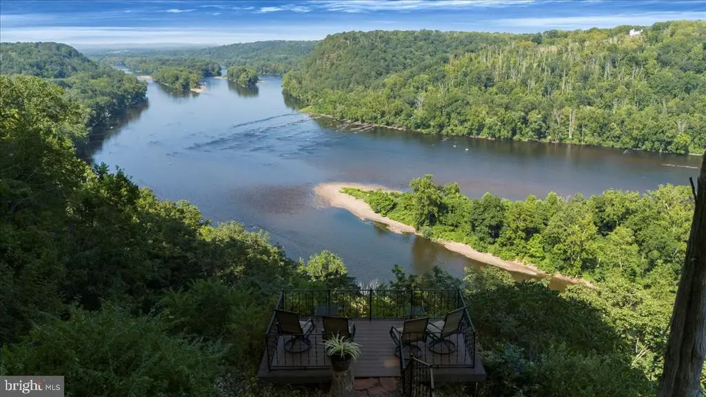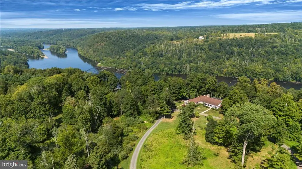 "Serenity" is a magnificent property with coveted long distance elevated views of the Delaware River! This 39+ acres estate offers a primary level Main Bedroom, Large Living & Dining Rooms, Vaulted ceiling Gathering Room and large Kitchen all with view orientation to the river. Other rooms include 2 story entry foyer, 2 additional bedrooms on the first level, formal Dining Room, private Study, and a large Guest Suite en suite bath on the second level. Additional features include: Deck and lower patio, Observation patio, extensive garage for the collector or hobbyist, serene pond, nature walking trails, and horse barn. This may be the best view available in Bucks County!
