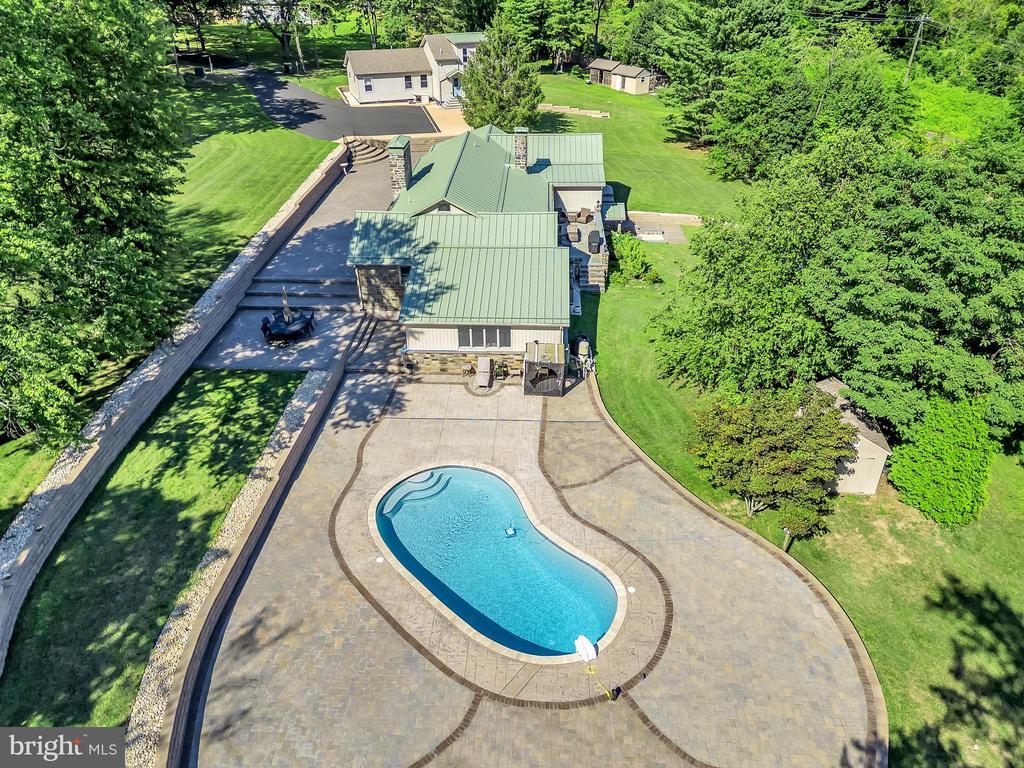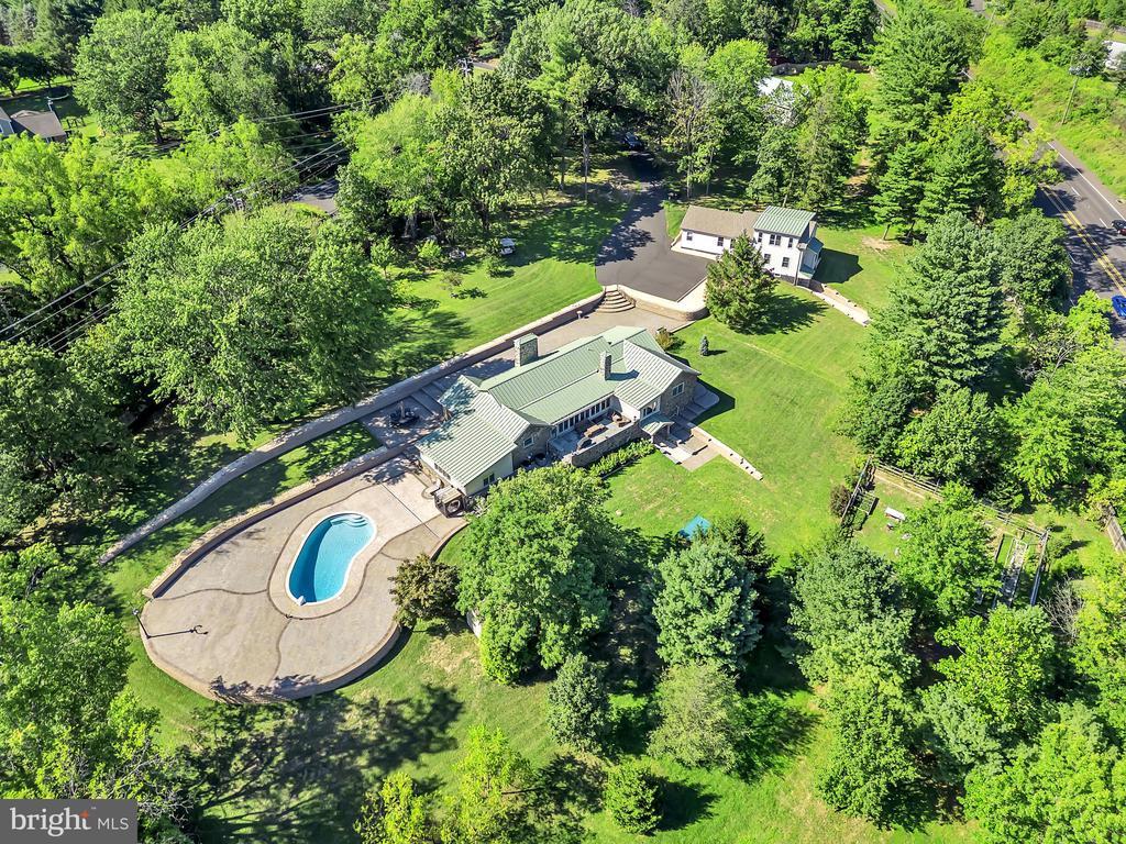 Exceptional Dual-Home Estate on Nearly 7 Fully Fenced Acres in Warwick Township Welcome to 1851 Meetinghouse Road, a rare opportunity to own a stunning private estate with an automatic gate. This remarkable property features two separate residences and a 1,200 sq ft pole barn with a large attic, all enhanced by a host of high-end upgrades—perfect for multi-generational living. The main house, a 2,900 sq ft stone residence fully renovated in 2021, blends classic architecture with luxurious modern finishes. It offers 2 spacious bedrooms, 2.5 beautifully updated bathrooms, and a 5-zone HVAC system. The gourmet kitchen is outfitted with premium Miele appliances and heated floors, while the sunroom and living room feature both heated floors and motorized blinds, providing year-round comfort and effortless style. Throughout the home, Andersen windows provide energy efficiency, natural light, and superior craftsmanship. A generator, large paver patio, and elevated views enhance both peace of mind and lifestyle enjoyment. The in-ground pool completes the resort-like outdoor living experience. In-law house built brand new in 2023, is a fully independent 2,100 sq ft home featuring 3 bedrooms, 2.5 bathrooms, a 3-zone HVAC system, and a thoughtfully designed finished walk-out basement with heated floors—perfect for additional living space, a home gym, entertainment area, or extended guest accommodations. The walk-out basement provides direct access to the expansive grounds and offers seamless indoor-outdoor living. The impressive 1,200 sq ft pole barn, accessed via a separate driveway, adds tremendous value and flexibility, with ample room for storage, garage use, workshop space, or creative pursuits, plus a large attic for additional capacity. This extraordinary estate offers unmatched privacy, flexible living arrangements, and premium amenities—while remaining just minutes from shopping, dining, and major commuter routes.