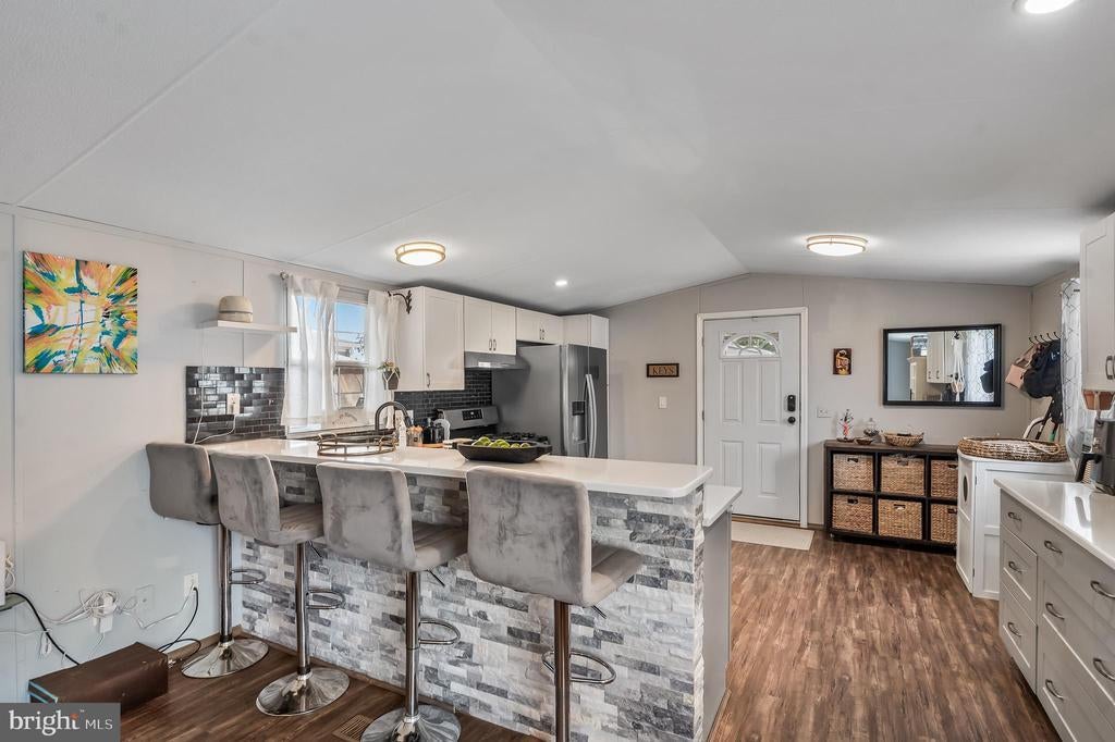 Nothing left to do but move in and make yourself at home! Attention to detail shows thorough in many updates in this three bedroom, one bathroom home. Enter via the front porch that doubles as wonderful outdoor living space. The front of the home welcomes you to the open floor plan living room and eat-in kitchen. There is low maintenance vinyl floor running throughout the home. The kitchen has been updated with quarts countertops, marble backsplash and a stainless appliance package. Moving down the hallway, the laundry and full bathroom are conveniently located central to the bedrooms. The bedrooms offer great closet space, overhead lights and are finished with tasteful accents. Close to commuter routes, shopping and much more, schedule a private tour today.