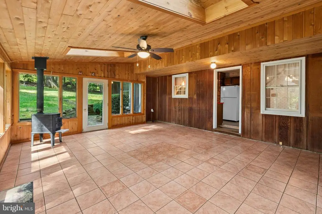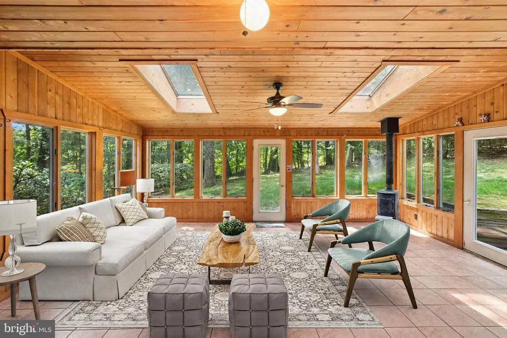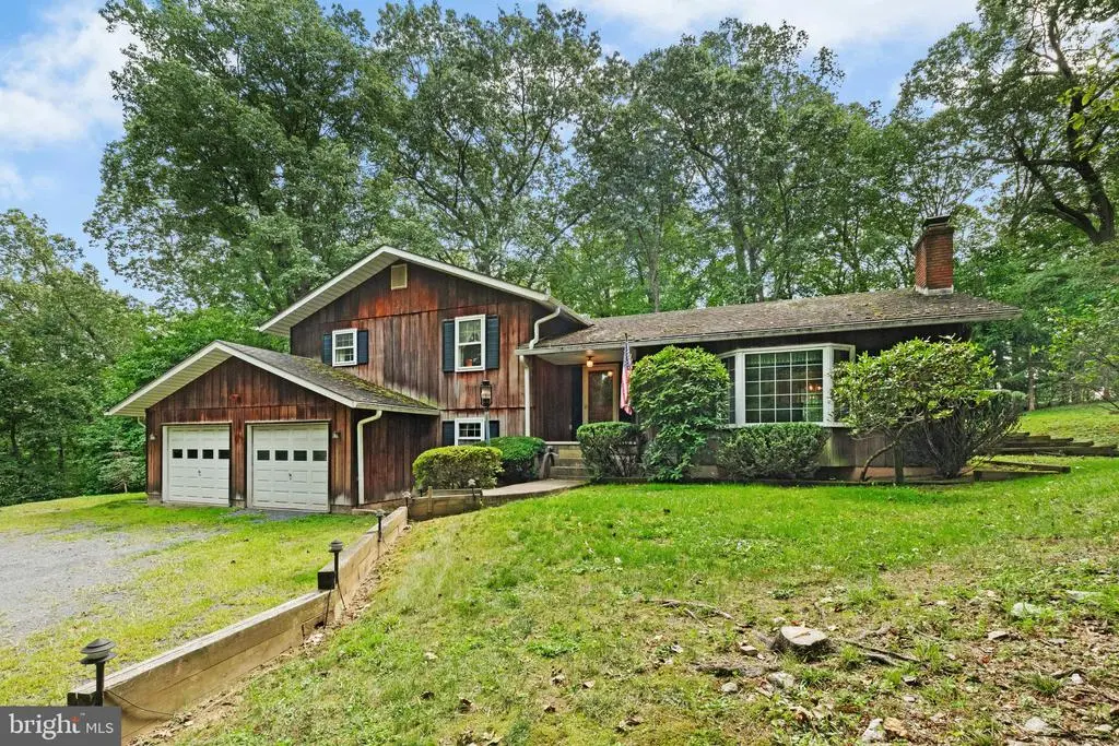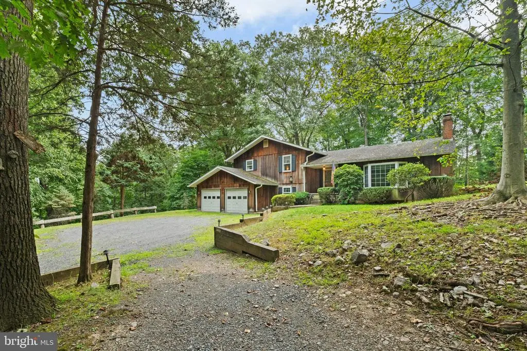 Set amidst the rolling hills of upper Bucks County where history and natural splendor marry to create an idyllic lifestyle, this home doubles as a full-time home and a vacation retreat, perfect for those seeking a peaceful country lifestyle. Redwood Hideaway is privately set on 3.5 wooded acres in the Palisades School District at the end of a long winding driveway in an unspoiled rural area with easy access to New Jersey, the Lehigh Valley and Doylestown. Redwood siding frames a sprawling floor plan that includes a large living room with wide plank wood floors, bow window, exposed beams and classic shelving and cabinetry flanking a brick fireplace. A large dining room with wide plank wood floors and chair railing is adjacent to a kitchen with pantry closets and brick wall encompassing a cooktop and wall oven. A massive sunroom with wood ceiling, skylights, wood stove and walls of windows overlooks the surrounding woodlands. An expansive family room also offers built-in shelving and cabinetry while a full bath and laundry room with storage are conveniently located nearby. Three second floor bedrooms include a primary suite with walk-in closet, In addition to the attached 2-car garage, a 40’x24’ pole barn with oversized doors will appeal to a multitude of needs including housing equipment, atvs, collections and projects. Redwood Hideaway offers the luxury of simple comfort, peace and privacy interrupted only by nature’s wonderful sights and sounds.
