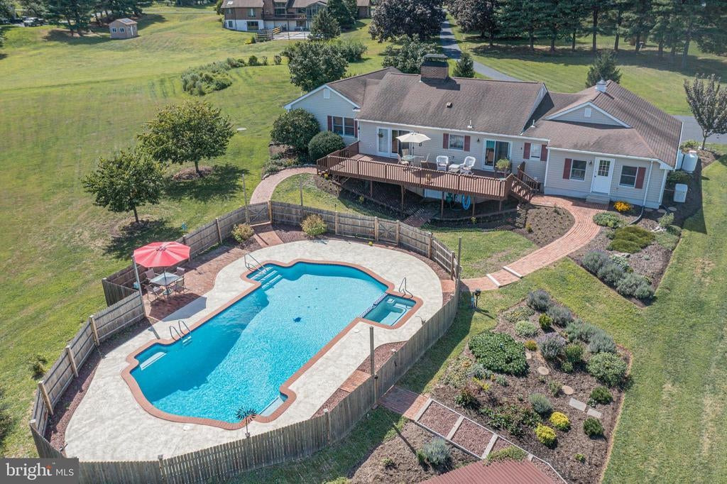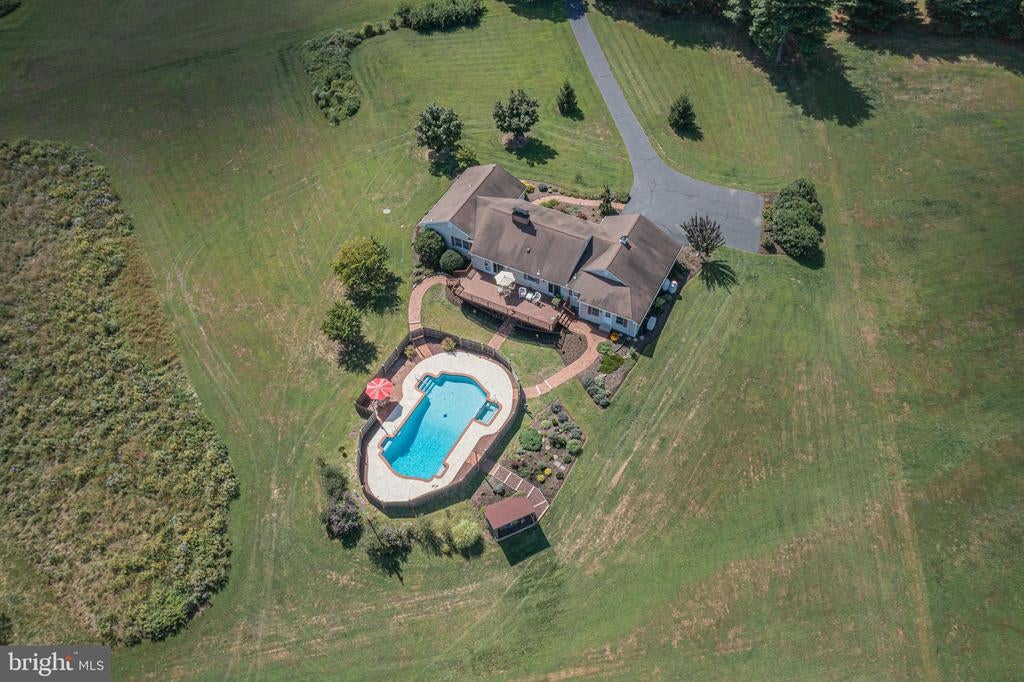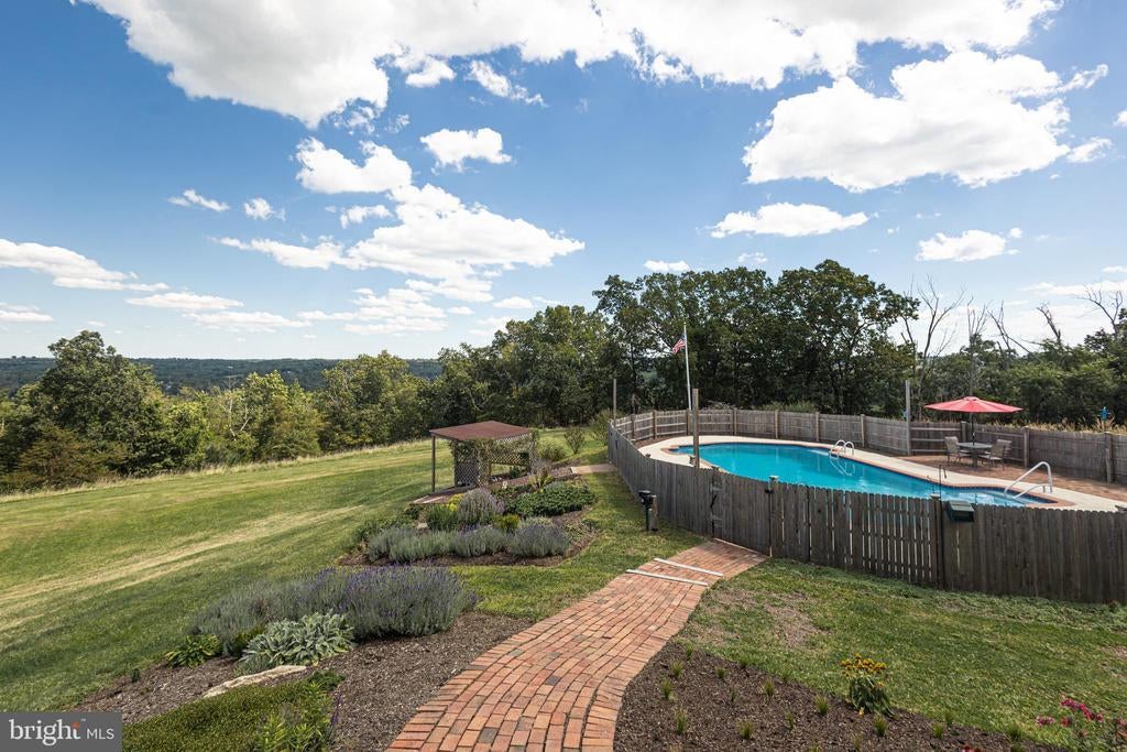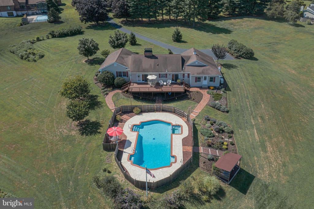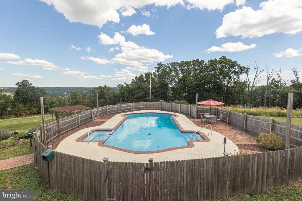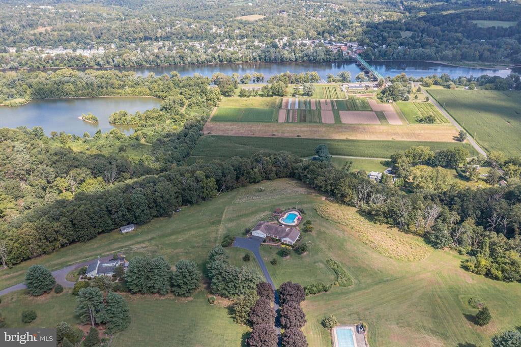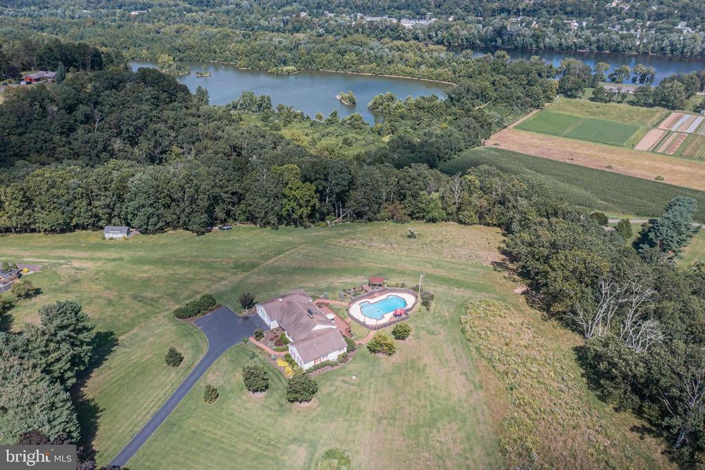 Tucked back from the road down an idyllic driveway lined on either side with mature red maple trees, this special property offers a setting like no other. Set on over four lush acres in the hills of Tinicum Township, you will be amazed by the stunning long-distance views of the rolling countryside of Upper Bucks County. This handsome ranch home boasts fantastic updates, a neutral color palette throughout, and a gorgeous in-ground pool. A bright foyer with stone tile floor and large coat closet opens to the inviting living room where a large bay window overlooks the front yard. The formal dining room with wainscoting opens to the updated eat-in kitchen featuring stainless steel appliances, granite counters, tile backsplash, and abundant storage including pantry. A breakfast area is set before glass doors that take in the gorgeous sight of the hills beyond, while a lovely powder room and main level laundry are tucked around the corner for added convenience. A cozy den features a fireplace flanked by built-in shelves and glass doors that frame those impressive views. Down the hall are the private quarters where the primary bedroom suite boasts a deep walk-in closet with custom organizers, and a recently updated ensuite bathroom with a glass and tile walk-in shower. Two more sweet bedrooms share a fully updated hall bathroom. Sliding glass doors in both the den and kitchen open onto the expansive back deck overlooking the verdant backyard with a recently renovated and fully fenced-in in-ground pool sur-round by enchanting butterfly gardens. Sip your morning coffee, watch the sun-rise over the hillside, and enjoy the peace and utter privacy that surrounds you. A pristine oversized attached two-car garage adds versatility, and the full walk-out basement is massive and offers abundant clean dry storage, plenty of space for a workshop, a pellet stove, and direct access to the pool. Plus central air and a whole house generator. Spend your weekends relaxing poolside or exploring Bucks County from this fantastic move-in-ready home surrounded by natural beauty.