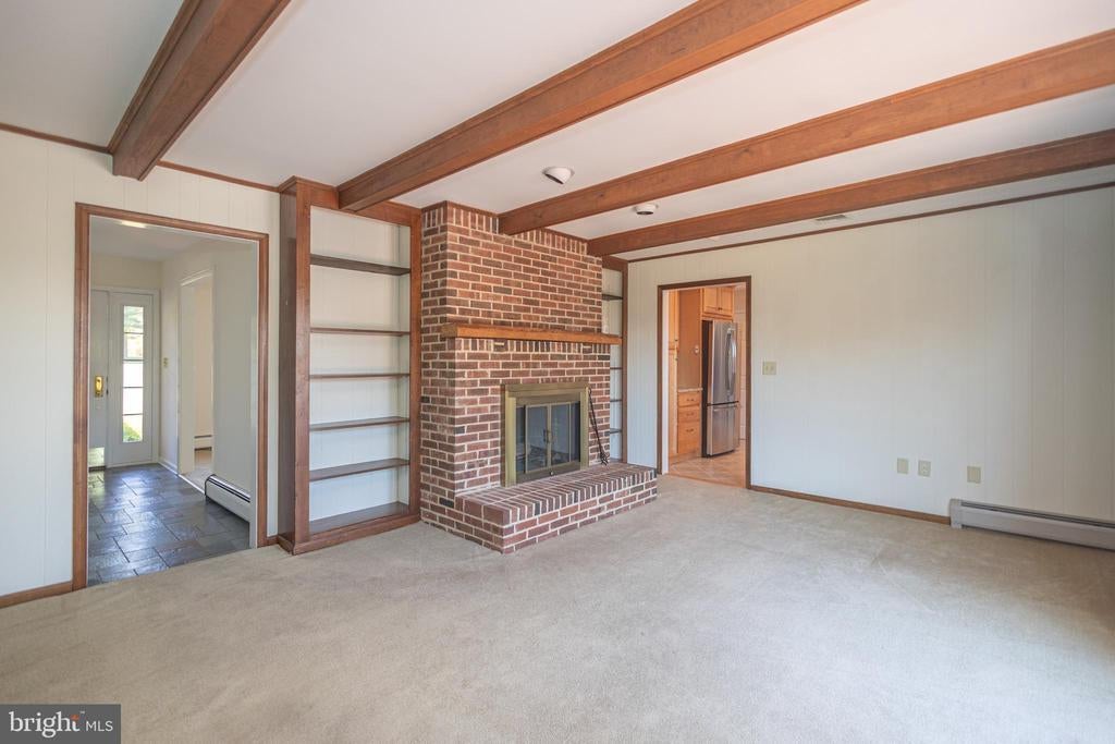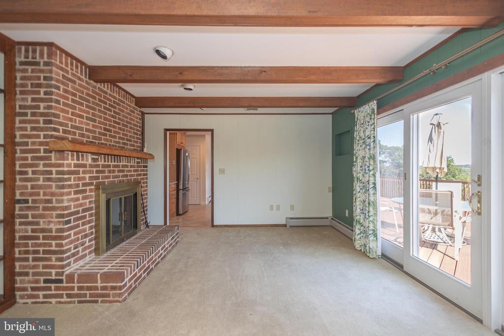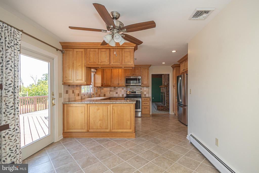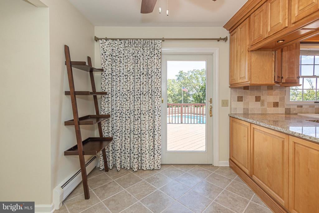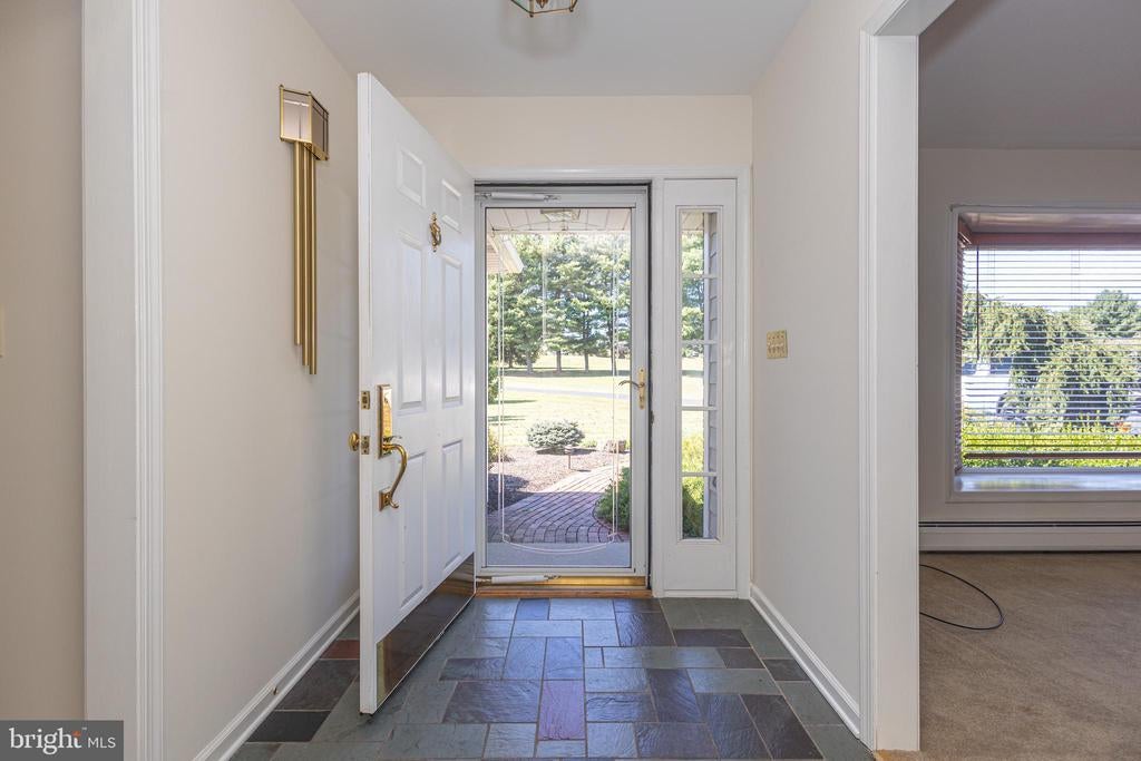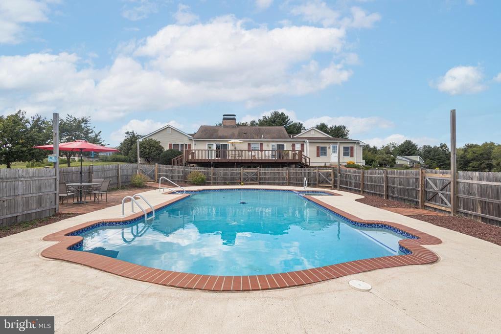 Tucked back from the road down an idyllic driveway lined on either side with mature red maple trees, this special property offers a setting like no other. Set on over four lush acres in the hills of Tinicum Township, you will be amazed by the stunning long-distance views of the rolling countryside of Upper Bucks County. This handsome ranch home boasts fantastic updates, a neutral color palette throughout, and a gorgeous in-ground pool. A bright foyer with stone tile floor and large coat closet opens to the inviting living room where a large bay window overlooks the front yard. The formal dining room with wainscoting opens to the updated eat-in kitchen featuring stainless steel appliances, granite counters, tile backsplash, and abundant storage including pantry. A breakfast area is set before glass doors that take in the gorgeous sight of the hills beyond, while a lovely powder room and main level laundry are tucked around the corner for added convenience. A cozy den features a fireplace flanked by built-in shelves and glass doors that frame those impressive views. Down the hall are the private quarters where the primary bedroom suite boasts a deep walk-in closet with custom organizers, and a recently updated ensuite bathroom with a glass and tile walk-in shower. Two more sweet bedrooms share a fully updated hall bathroom. Sliding glass doors in both the den and kitchen open onto the expansive back deck overlooking the verdant backyard with a recently renovated and fully fenced-in in-ground pool sur-round by enchanting butterfly gardens. Sip your morning coffee, watch the sun-rise over the hillside, and enjoy the peace and utter privacy that surrounds you. A pristine oversized attached two-car garage adds versatility, and the full walk-out basement is massive and offers abundant clean dry storage, plenty of space for a workshop, a pellet stove, and direct access to the pool. Plus central air and a whole house generator. Spend your weekends relaxing poolside or exploring Bucks County from this fantastic move-in-ready home surrounded by natural beauty.