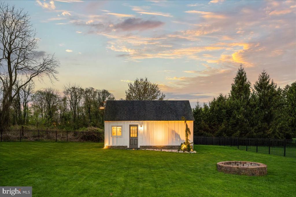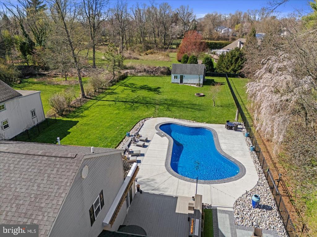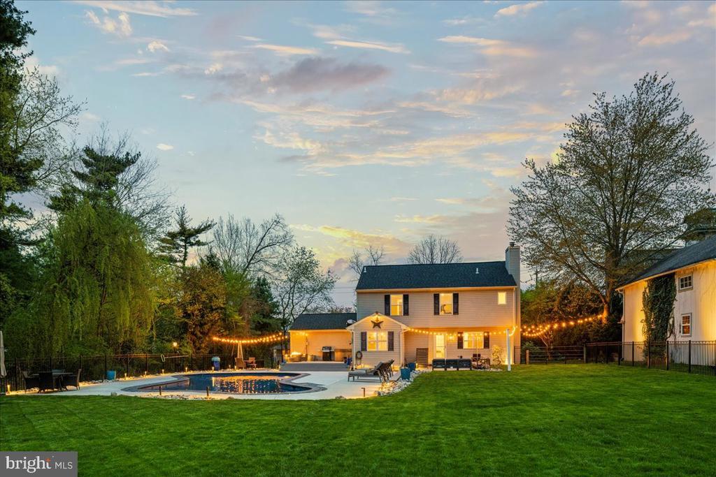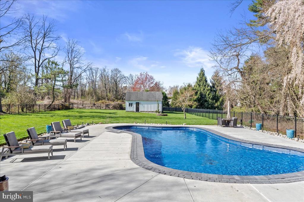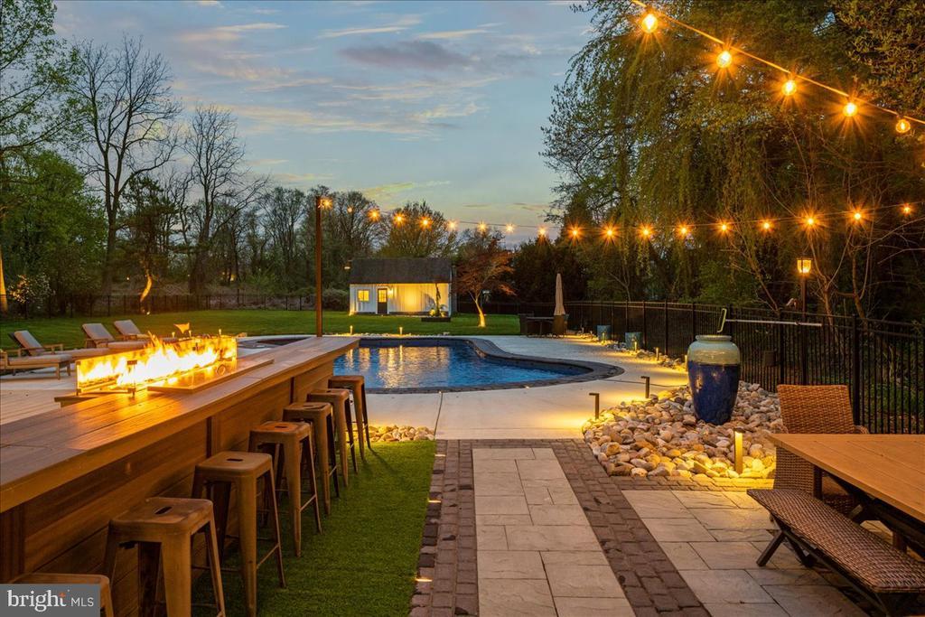 Awning(s), Flood Lights, Outbuilding Apartment, Exterior Lighting, Deck(s), Porch(es), Fenced-Fully, Concrete, Pool (In-Ground)