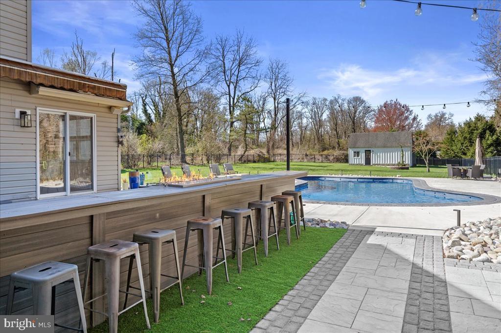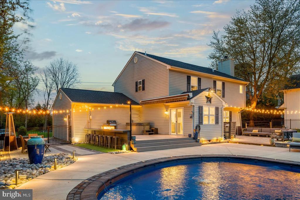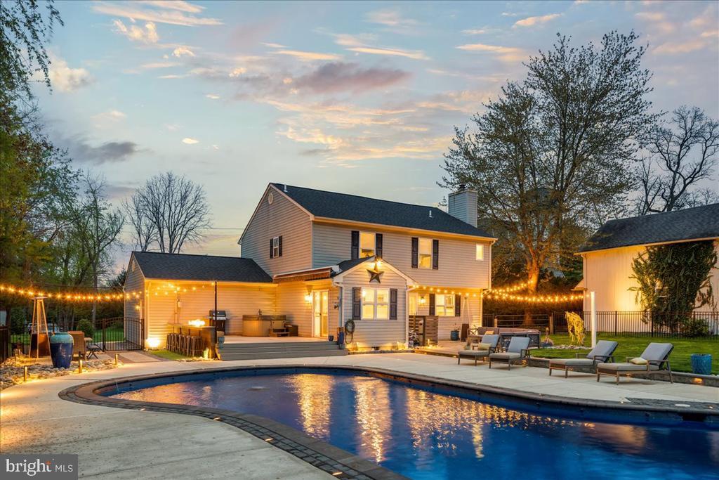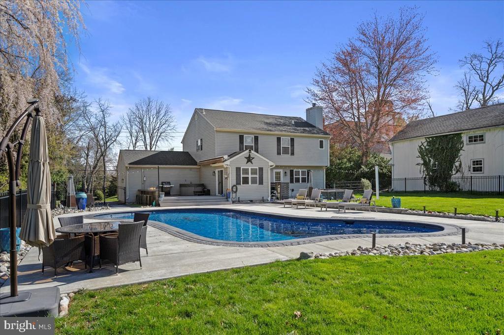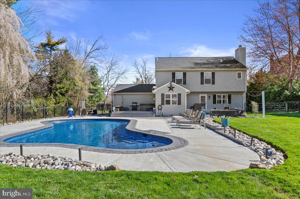 This beautiful home truly has it all, offering the perfect blend of comfort, style, and functionality. Featuring 4 bedrooms, 2.5 baths, a 2-car garage, and plenty of additional parking, it provides space for both everyday living and entertaining. As you step inside, you are greeted by stunning white oak laminate flooring that flows seamlessly throughout the first floor, setting the stage for an inviting and modern feel. The heart of the home is the open-concept kitchen and family room, where you’ll find stainless steel appliances, granite countertops, a tiered breakfast bar, beverage center, and a bright breakfast area that leads directly to the expansive deck. The family room is highlighted by a gas fireplace with porcelain inlay and a mantle, along with vaulted ceilings that create a sense of warmth and openness. For more formal gatherings, there is a separate dining room with a convenient pass-through, while the living room, bathed in natural light, provides yet another space to relax or entertain. Upstairs, the massive primary suite is a true retreat with a vaulted ceiling, dressing area, walk-in closet, and private bath featuring both a soaking tub and separate shower stall. Three additional bedrooms, each generously sized and equipped with lighted ceiling fans, offer flexibility for family, guests, or home office space. A full hall bath completes the upper level. The outdoor space is where this home really shines. The backyard is designed for both relaxation and fun, featuring a custom bar top, saltwater pool, and an expansive paver patio that wraps around the back of the house. Multiple access points from the family room and deck make it easy to enjoy indoor and outdoor living. Adding even more charm and functionality, there is an outbuilding barn perfect for games, hobbies, or extra storage. Additional features include a full basement for storage or finishing, and a newly paved oversized driveway and new hot water heater. Located close to shopping, restaurants, and more, this home is perfectly positioned to enjoy everything the community has to offer. Please be aware that the photos may include furniture not currently present in the home.