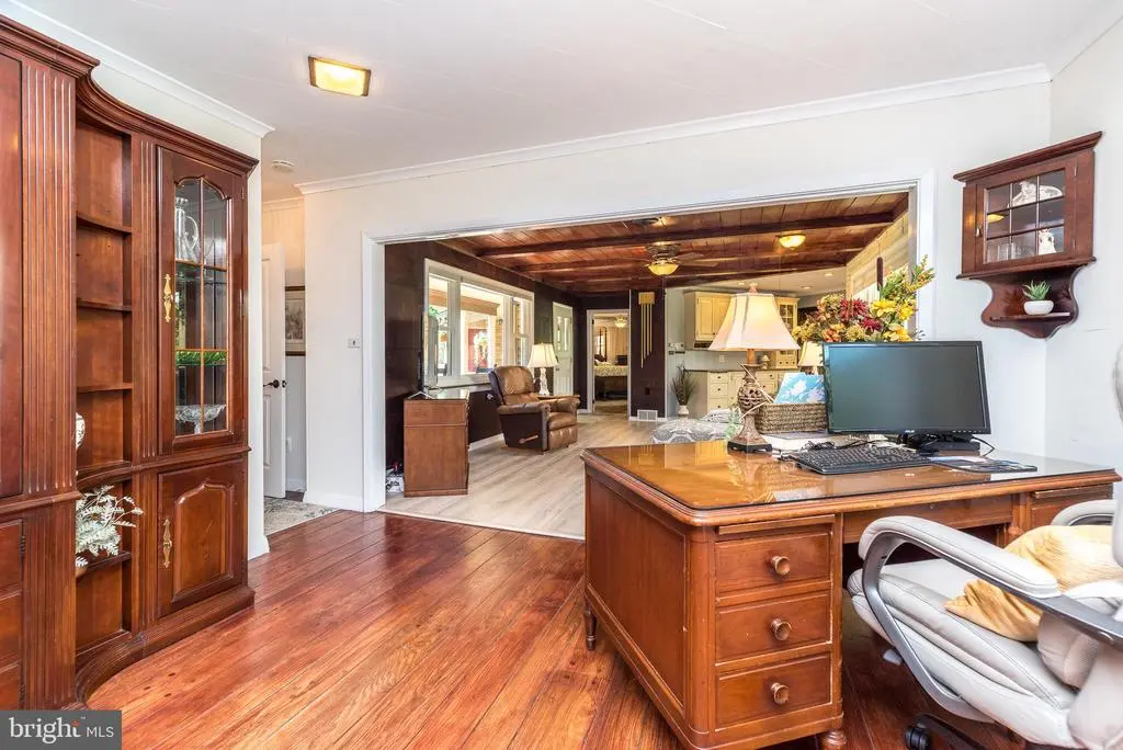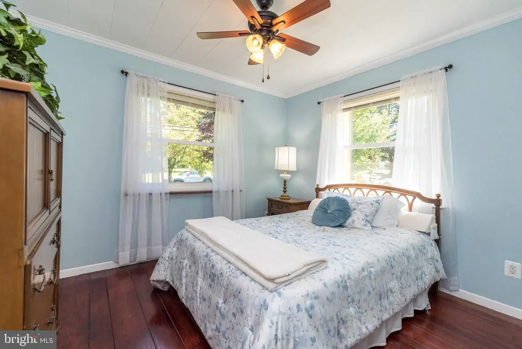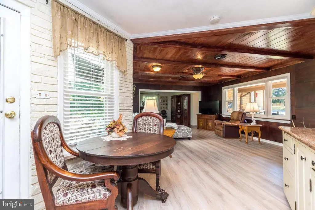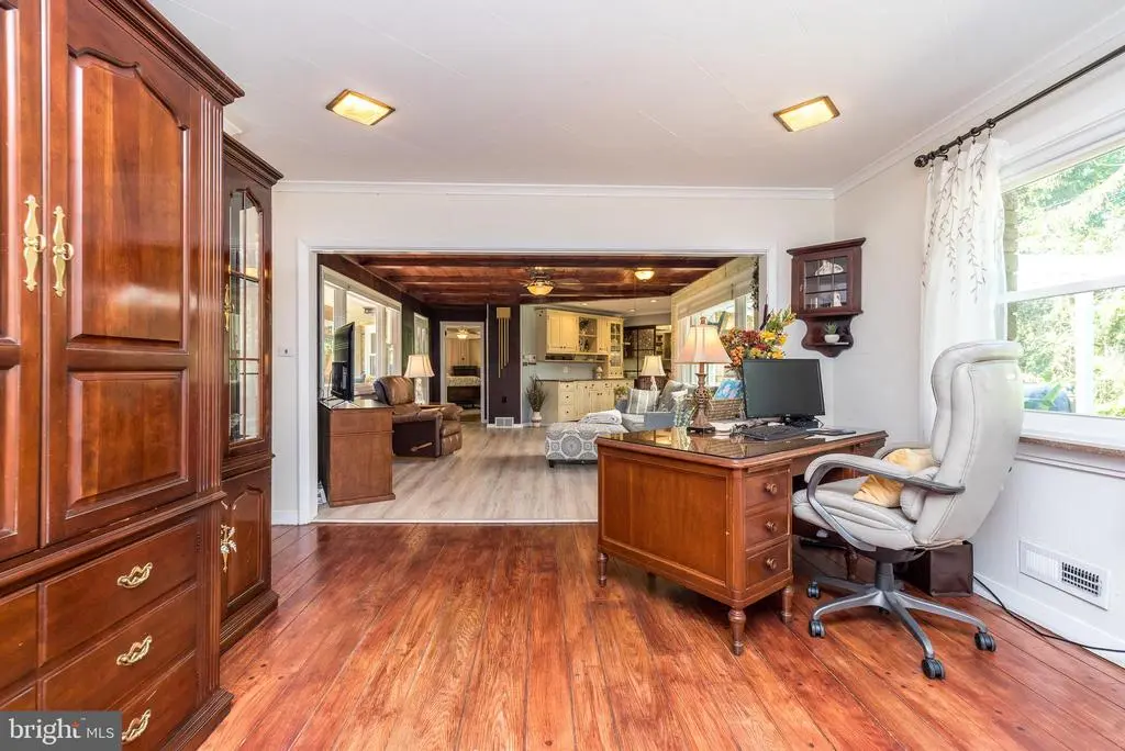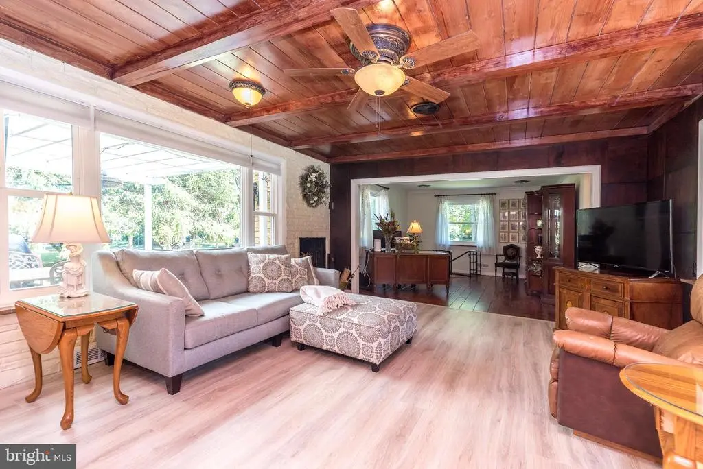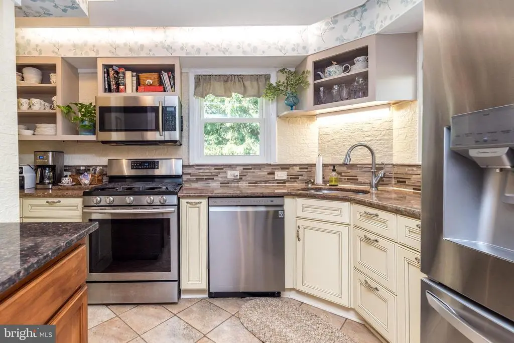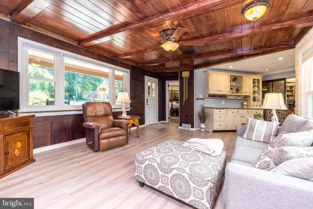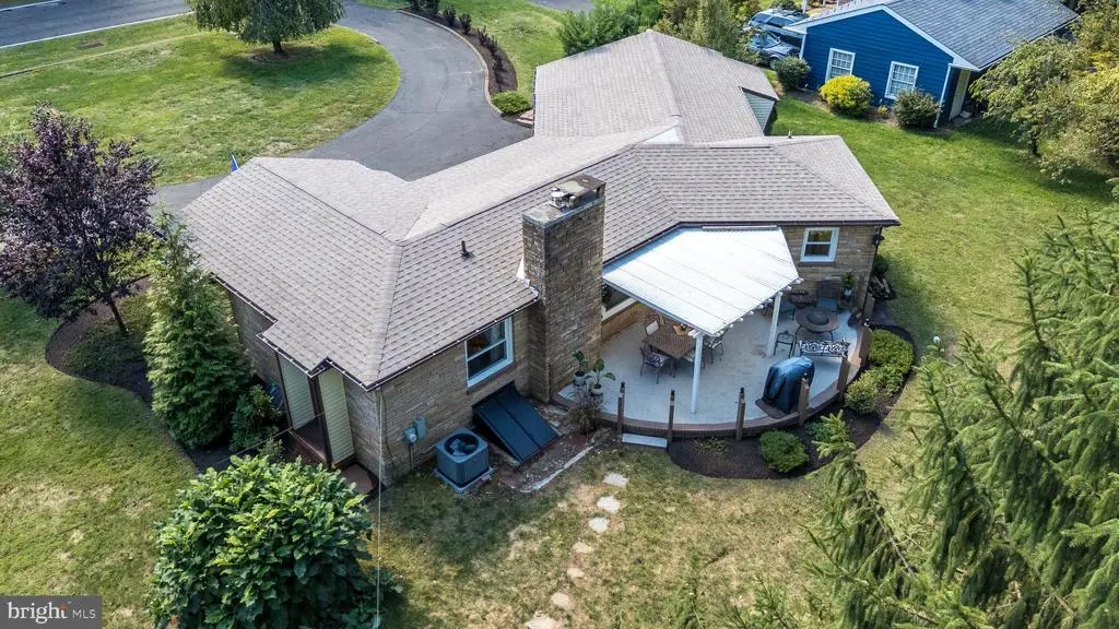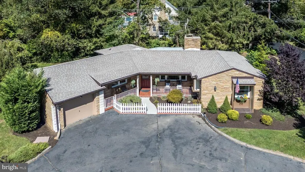 A Mid-Century Modern at its best! Located just a short walk to the charming town and shopping district of Yardley Borough, and in the highly regarded Pennsbury School District, this meticulously maintained ranch home seamlessly blends modern amenities with classic charm. Offering one-floor living in the prestigious West Acres section of Lower Makefield, and nestled on a .40-acre corner lot, this property combines classic character with modern updates in one of Yardley’s most picturesque neighborhoods. Upon arrival, you will find a convenient circular driveway for ease of access that leads you to the charming front porch, a perfect outdoor retreat to sit and enjoy a nice cup of coffee. As you enter the home, get ready to be impressed by the details! You will find a bright open floor plan and an inviting living room with exposed wood beams and decorative fireplace. Large, newer windows allow for tons of natural sunlight and views of the wooded backyard. The living room is open to the cozy dining area, which offers a Butler's pantry with beautiful granite countertops, the perfect place to store all of your entertaining and serving pieces. The kitchen is updated with tile flooring, gorgeous granite countertops, tiled backsplash, cream wood cabinets, stainless steel appliances, and a pocket door for additional kitchen storage space. Off this area is the covered, freshly epoxied, back patio with mounted tv for tranquil nights and outdoor meals. Adjacent to the living room is a home office area which can also double as a separate living area or reading room. Tucked in the corner are wrought iron rails and a curved staircase that leads you down to the finished lower level with built ins, tile flooring, and outside entrance with Bilco door. This level offers an additional family room area, gym space, or could double as a third bedroom. Also down here in its own private room is the nicely finished laundry area that also houses the mechanicals. Back upstairs, the main bedroom is spacious with parquet flooring, deep closet and a well appointed main bathroom. The sunny second bedroom is also spacious with solid wood flooring, ample closet space, and easy access to the retro full hall bathroom. There is alsa a freshly epoxied attached garage, boasting an extra deep length with large storage area in the rear. Notable upgrades to this home include: Roof (2020, transferable warranty), HVAC (2022), Refrigerator & Dishwasher (2024), and Windows (2020). Conveniently located near the train station, major roadways, Princeton, New Hope, Philadelphia, and NYC, plus boutique shopping and fine dining. This lovingly maintained home offers timeless style, modern comfort, and unbeatable convenience.