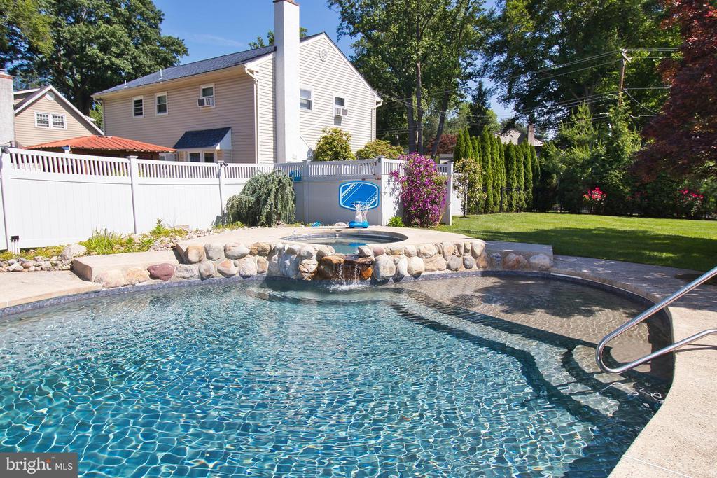 BBQ Grill, Extensive Hardscape, Exterior Lighting, Flood Lights, Hot Tub, Sidewalks, Street Lights, Patio, Porch(es), Pool (In-Ground), Pool/Spa Combo