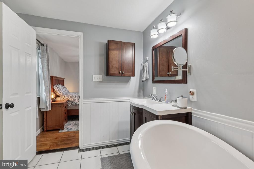 Master Bath(s), Butlers Pantry, Exposed Beams, Tub Shower, Built-Ins, Entry Lvl BR, Pantry, Wood Floors