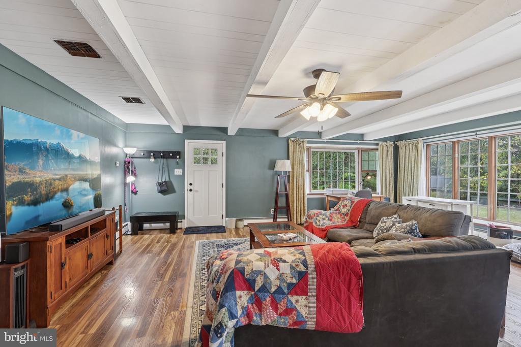 Showings start 10/18 at the open house from 10-12PM. Welcome to your private retreat in bucolic West Rockhill Township — a beautifully maintained ranch home tucked on a park-like property surrounded by mature trees, flowering shrubs, and lush green space. Set well back from the street, the home offers peace, privacy, and a picturesque approach down the long driveway that leads to a two-car attached garage, complete with interior access and a convenient side entrance through the Great Room. There’s even in-law suite potential — but more on that later. Step inside the impressive 24′ 24′ Great Room, where a wall of windows floods the space with natural light and captures stunning backyard views. A full brick-surround wood-burning fireplace, cedar ceiling with wood beams, and hidden pocket door create warmth and architectural character, serving as the heart of the home. Just off the Great Room, the formal dining room features a bow window and plenty of space for hosting family gatherings or dinner parties. The eat-in kitchen offers solid cherry cabinetry, new appliances, and a spacious pantry closet. A large living room with a second wood-burning fireplace and refinished hardwood floors flows seamlessly from the main living areas, continuing through the hallway and bedrooms. The primary bedroom includes a bay window, two closets, and a private ensuite bath. One of the two additional bedrooms has been expanded to create a larger, more flexible layout, perfect for a guest room, home office, or shared space. A full hall bath completes the main level. Downstairs, the unfinished basement presents endless possibilities. With existing plumbing for a third bathroom and its own private entrance, it’s an ideal space to finish as an in-law suite, guest quarters, or recreation area. Step outside to the expansive deck overlooking the tree-lined backyard — perfect for relaxing, entertaining, or soaking in quiet evenings surrounded by nature. A 40′ 12′ detached workshop or storage shed offers plenty of space for hobbies, projects, or additional storage needs. This home has been thoughtfully maintained and upgraded over the years. Major improvements include a new roof and gutters (2020), conversion from oil to propane (2020), and the installation of a tankless water heater and new furnace/ac in 2021 for enhanced efficiency. The well pump was replaced in 2020, and the septic system has been regularly maintained and pumped. Inside, the kitchen appliances have been upgraded, and both the kitchen and bedroom windows (installed in 2013) were replaced with triple-pane, argon-filled windows for superior insulation. Both fireplaces are wood-burning, and masonry work has been completed on the chimney. The basement still has drainage and capped water lines for a kitchen and bathroom, making it easy to convert the space back into an in-law suite if desired. Located within the Pennridge School District, this home perfectly blends peaceful country living with convenience. PA-309 (Sellersville Bypass) and PA-152 are just minutes away, providing quick access to Quakertown, Doylestown, and Montgomeryville. Nearby Sellersville and Perkasie offer small-town charm with local favorites like Sellersville Theater 1894, Lake Lenape Park, boutique shops, and beloved restaurants.