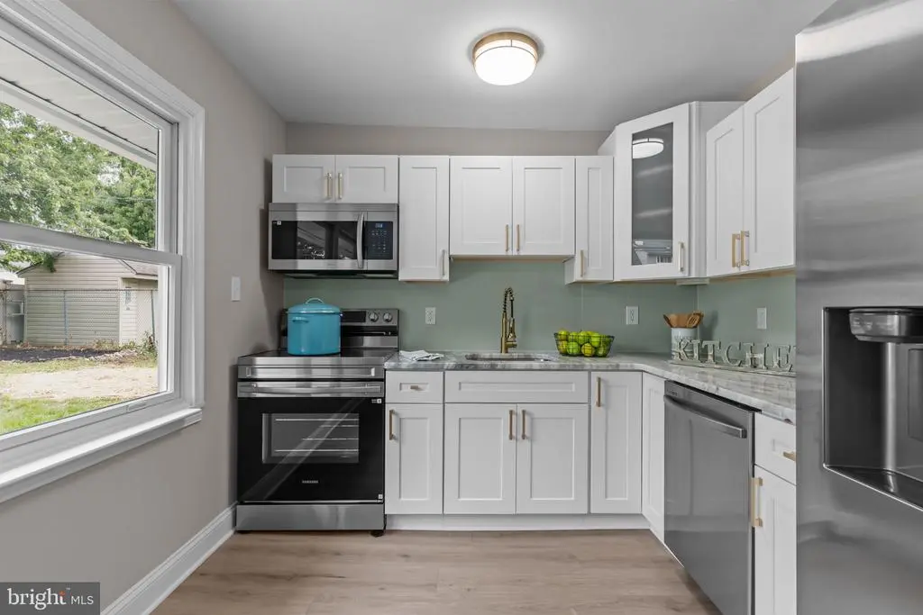 Welcome to 14 Iris Rd, a beautifully remodeled 4-bedroom, 2-bath home offering modern comfort and timeless style. This move-in ready property boasts great curb appeal and a spacious layout ideal for anyone seeking flexible living space. GAS. Rare Levittown Home with Natural GAS! Step into the bright and inviting living room featuring recessed lighting and a large bay window that fills the space with natural light. The updated eat-in kitchen is a true showstopper, complete with granite counters, stainless steel appliances, and a sliding glass door leading to the back porch — perfect for entertaining or relaxing outdoors. The main level offers two generously sized bedrooms and a fully updated full bath. Upstairs, you’ll find two more bedrooms and another beautifully renovated full bathroom, offering plenty of space for everyone. Enjoy a private, fenced-in backyard with a storage shed and room for gardening, play, or gatherings. Additional highlights include new flooring, modern finishes throughout, and a quiet, established neighborhood location. Don’t miss your chance to own this turn-key home in the heart of Levittown!