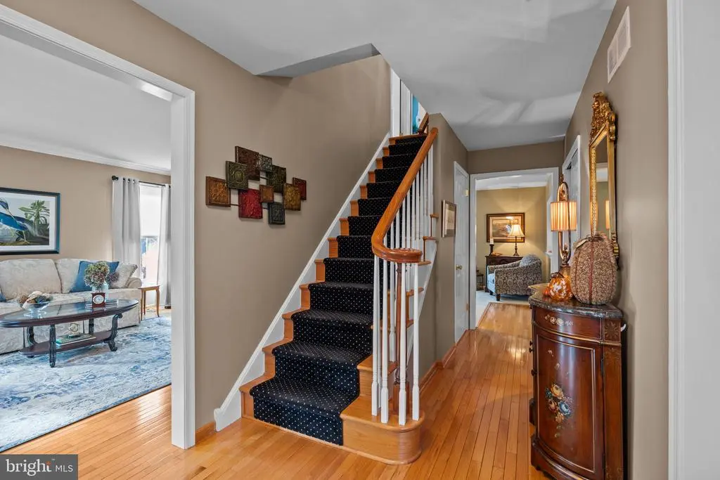 This beautifully maintained Four bedroom and 2.5 bath home in most desirable neighborhood in Richboro and sought-after Council Rock School District combines classic curb appeal with a traditional and spacious interior. The timeless brick front and inviting entry including a paver walkway and portico, all set the tone for a welcoming atmosphere. Inside, this elegant and immaculate Center Hall Colonial showcases thoughtful upgrades and amenities throughout. Hardwood floors flow across the main level and upstairs hallway, complemented by eye-catching decorative moldings. The updated kitchen features custom cabinetry, quartz countertops, tile backsplash, and stainless-steel appliances. The adjoining family room is highlighted by a gas fireplace flanked by built-in bookshelves and opens to a stunning sunroom with cathedral ceiling, skylights, and abundant natural light—perfect for gatherings or quiet mornings. The primary bedroom suite includes a private bath, and all bedrooms are generously sized with excellent closet space, in total four walk-in closets. Additional highlights include: •