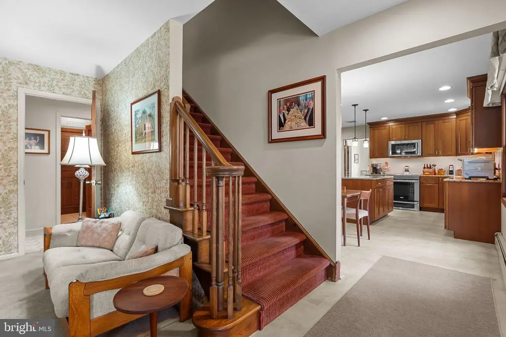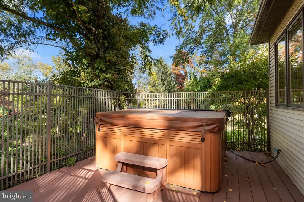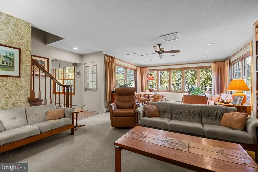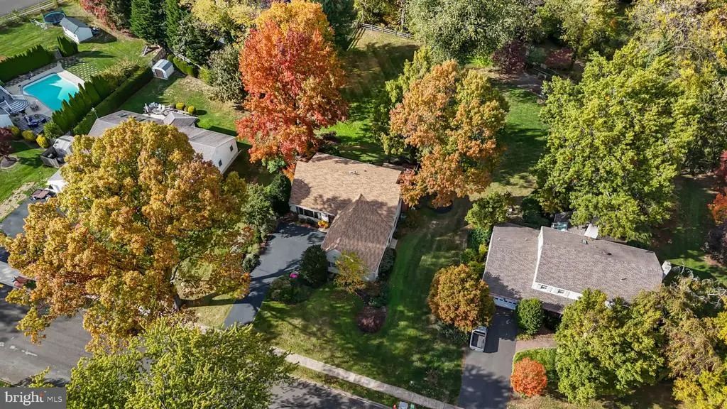 Welcome to this immaculate, spacious 4-bedroom residence located in the highly sought-after Carriage Hill community, situated on one of the neighborhood's finest lots. The entryway leads into the main living areas and key utility spaces. The large formal living room offers a sophisticated setting for entertaining and relaxation alike. Sunlight pours through large windows, accentuating a warm, inviting ambiance. The elegant dining room is highlighted by large sliding doors that open to the patio, making it perfect for indoor-outdoor dining. A large, updated eat-in kitchen features rich wood cabinetry extending to the ceiling, Cambria Quartz countertops with Corian backsplash and a large stainless steel Electrolux refrigerator alongside a large Electrolux freezer plus other stainless steel appliances. There is a convenient back door off the kitchen leading to the patio. The oversized family room is centered around a charming wood-burning fireplace flanked by built-in bookshelves and cabinetry plus an inviting, bright sunroom area which offers an abundance of windows and a lovely view of the backyard. Also on the main level is a bedroom, currently being used as an office, featuring a closet and large windows with an adjacent full bathroom. The laundry room includes an exterior door leading to the front of the house, serving as a functional mudroom entrance. The carpeted staircase with a wood railing leads up from the family room to the spacious second-floor hallway. The primary bedroom is generously sized and features plush carpeting, walk-in closet, a dedicated dressing area with a built-in vanity and excellent natural light from windows. The primary bathroom ensuite has a glass-enclosed, full-sized shower stall and a wide vanity with sink and a window which overlooks the beautiful backyard. Two well appointed additional bedrooms on this level are large with ample closet space and share a full hall bath with stylish tiled walls and a modern vanity with Corian sink top. A very large basement area (30 x 50) features a painted concrete floor and a high ceiling with exposed beams. Peace of mind is provided by well-maintained mechanicals, including a gas-fired Weil-McLain Gold heater/boiler, a newer Bradford White water heater, a water softener system and a sump pump. The two car garage with interior access features an additional bump-out area, providing extra space. Enjoy outdoor entertaining on the patio and the privacy of a fully landscaped backyard plus a separate deck area featuring a hot tub. The property is equipped with a whole-house generator ensuring comfort and security regardless of the weather. Walk down to Silver Lake and enjoy seeing neighbors or perhaps wildlife. Continue on a short distance and come to the Yardley golf course, the train station and the south end of Yardley borough main street. From back at the house, walk just two blocks to Edgewood Elementary school and just beyond that the Township playground, tennis courts, pool and ball fields. The Bucks County Library is also there. This home site is among the finest within Carriage Hill. Its extra depth with a total of 259' gives an oversized rear yard with a pleasant, private view of mature trees and historic neighboring properties. Schedule your private showing today!