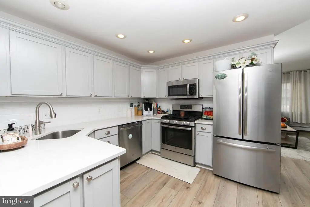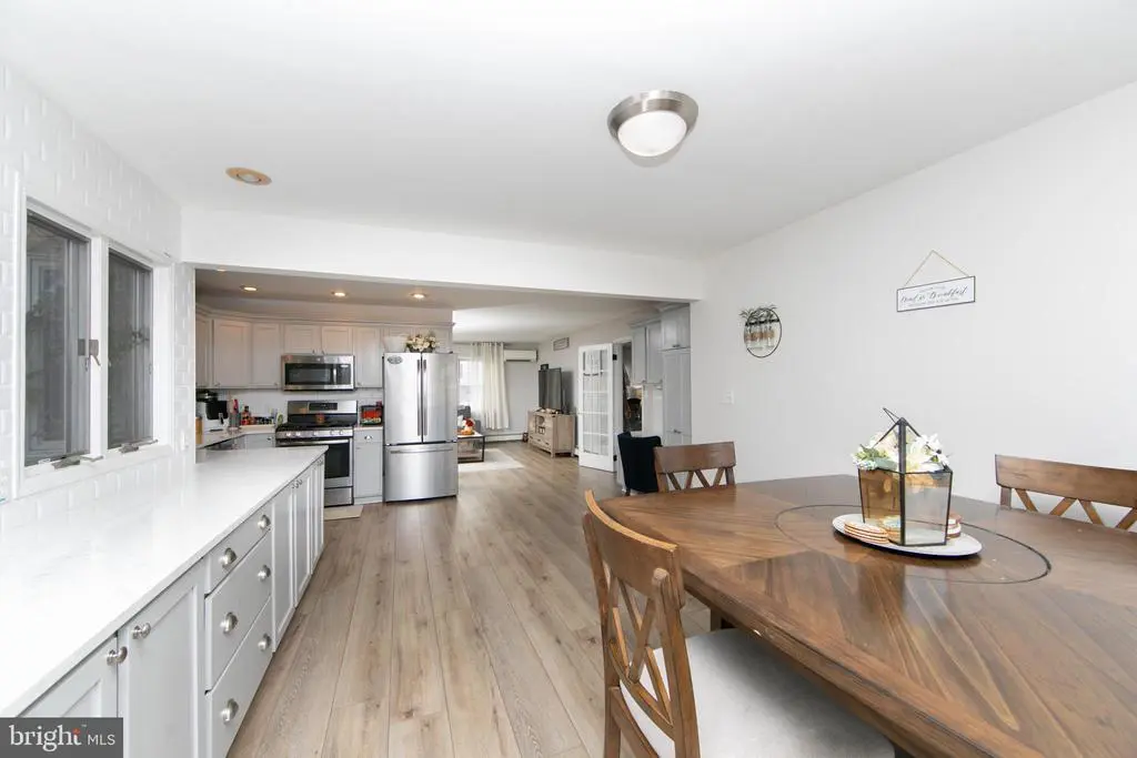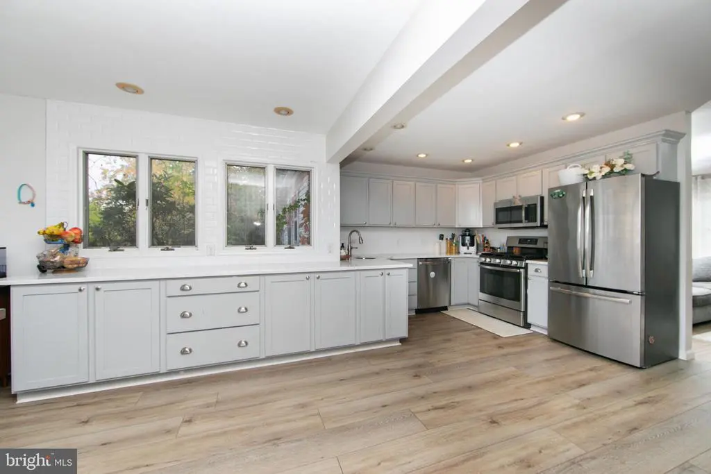 Welcome to this beautifully expanded and dormered Cape, offering space, comfort, and modern updates throughout. The expanded driveway provides ample parking and a convenient walkway leading to the front door—or directly to the backyard. Step inside to a large, inviting living room featuring luxury vinyl plank flooring that flows seamlessly into the spacious, updated kitchen. The expanded kitchen includes a generous dining area filled with natural light, plus abundant cabinet and counter space—perfect for cooking and entertaining. Enjoy all stainless steel appliances and, as a rare bonus in Levittown, natural gas cooking and heating! Just off the kitchen, you’ll find a cozy family room with a convenient side entrance. Beyond that is a large laundry room with built-in cabinets and counters, a roomy storage area, and a handy quarter bath, along with direct access to the backyard. The first floor offers two comfortable bedrooms and a full bath, while the dormered second level adds two additional bedrooms and another full bathroom—providing plenty of living space for everyone. Step outside to enjoy the paver patio, ideal for relaxing or entertaining, and a convenient backyard storage shed. Located on a quiet suburban street within the desirable Neshaminy School District, this home combines warmth, practicality, and location. Welcome home!