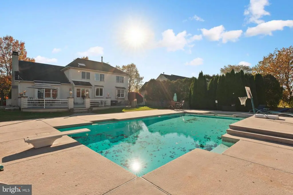 Welcome to this beautifully maintained four bedroom, two and a half bath home in the award winning Council Rock School District. From the moment you step into the impressive two story foyer with its graceful turned staircase and elegant tile floors, you will feel the warmth and sophistication this home offers. The formal living and dining rooms sit to the left of the foyer, featuring rich hardwood floors, crown molding, and chair rail accents, perfect for entertaining or holiday gatherings. To the right, a private office with hardwood floors offers a quiet retreat and is currently used as a guest bedroom, adding versatility to the floor plan. The spacious eat in kitchen is the centerpiece of the home, complete with a sun filled breakfast area, center island, double wall oven, and a door that leads to the paver patio. The kitchen opens seamlessly to the inviting family room, highlighted by cathedral ceilings and a cozy fireplace that creates the perfect space for relaxing and spending time together. A powder room, convenient laundry room with access to the three car garage, and plenty of storage complete the first floor. Upstairs, the luxurious primary suite offers a serene escape with a spacious sitting room, large walk in closet, and a beautifully appointed bath featuring a double sink vanity, Jacuzzi tub, oversized stall shower, and private water closet. Three additional bedrooms and a full hall bath provide plenty of comfort and space for family or guests. Each bedroom features hardwood flooring and recessed lighting. The lower level offers a partially finished area ideal for a recreation room, gym, or home theater, along with a large unfinished space perfect for storage or future expansion. Step outside to your private backyard oasis with a stunning in ground pool, paver patio, and fenced yard, perfect for entertaining, relaxing, and enjoying warm summer days. This home combines timeless design, quality craftsmanship, and an exceptional location, offering the perfect blend of elegance and everyday comfort.