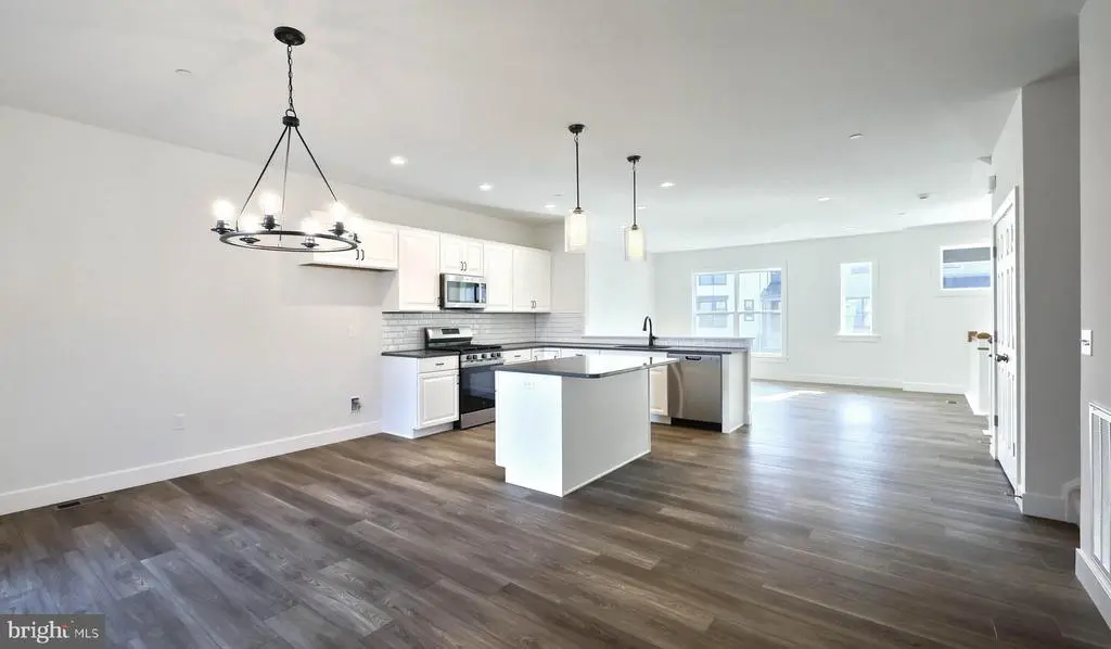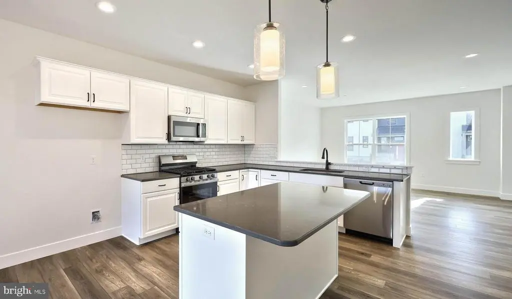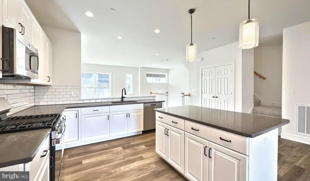 This 2-story townhome includes a 1-car, rear load garage, mudroom entry with built-in bench, and a patio for outdoor living. The first floor boasts 9’ ceilings and stylish vinyl plank flooring. The kitchen, featuring stainless steel appliances, attractive cabinetry, and quartz countertops with a tile backsplash, opens to the spacious dining area and adjacent to the sunny living room. All 3 bedrooms, 2 full bathrooms, and a convenient laundry room are located on the 2nd floor. The owner’s suite features an expansive closet, and a private bathroom with a double bowl vanity and 5’ shower.