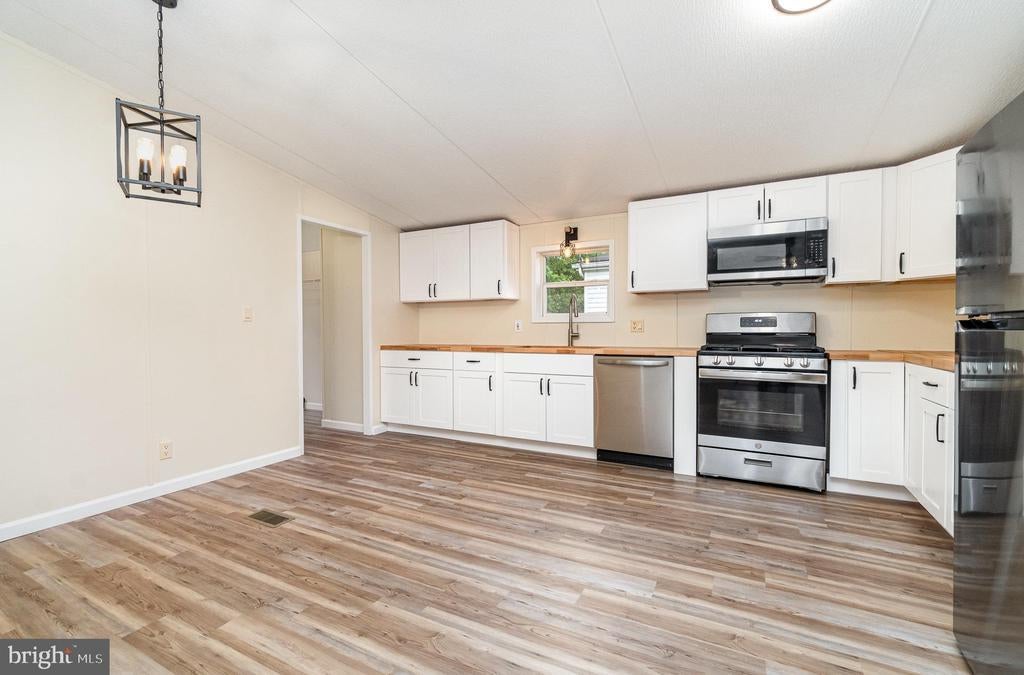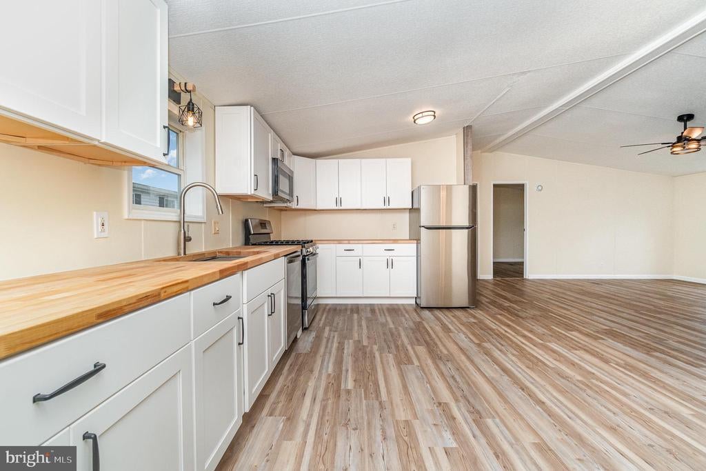 Nestled in a serene, quiet mobile home community, this beautifully updated 3 Bed, 2 Bath double wide mobile home offers modern comfort and style. Step inside to discover a bright, open interior with vaulted ceilings, fresh paint, luxury vinyl plank flooring throughout. The brand-new kitchen is a chef’s dream, featuring sleek butcher block counters, an undermount sink, stainless steel appliances, and soft-close cabinets. Both bathrooms have been thoughtfully updated with new vanities and toilets for a fresh, contemporary feel. Enjoy new lighting fixtures throughout, highlighting the home’s modern charm. Outside, a large, freshly painted back deck is perfect for relaxing or entertaining. With updated plumbing and meticulous attention to detail, this move-in-ready home is a rare find. Don’t miss your chance to own this gem—schedule a showing today!
