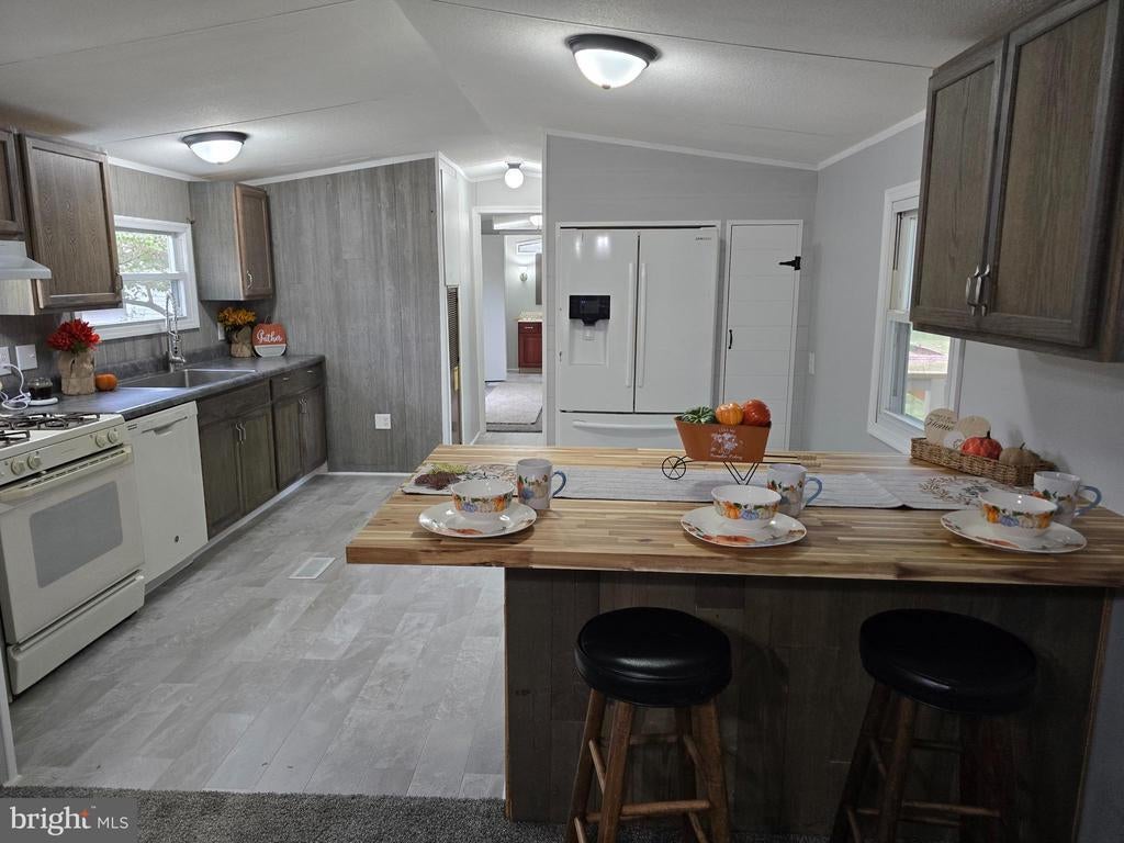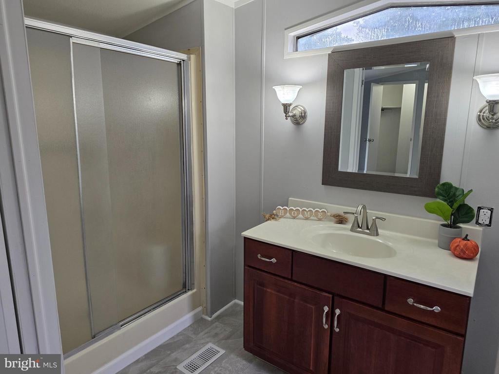 As you drive by the beautiful corner lot, you will notice mature trees, rose bushes, and a butterfly bush, etc. Next pull into the driveway and get out under the carport. Walk up to the mobile and go into a 3 season room and then go into the mobile to the living room. Turn left to a full bath and a bedroom. Turn right into the living room and then go into the kitchen with a new butcher block island to sit and eat, next is the laundry room, and go through to the primary suite. New flooring throughout and many upgrades. Schedule your showing quickly, this won't last long. Must be park approved. One owner is a Pa licensed Realtor.