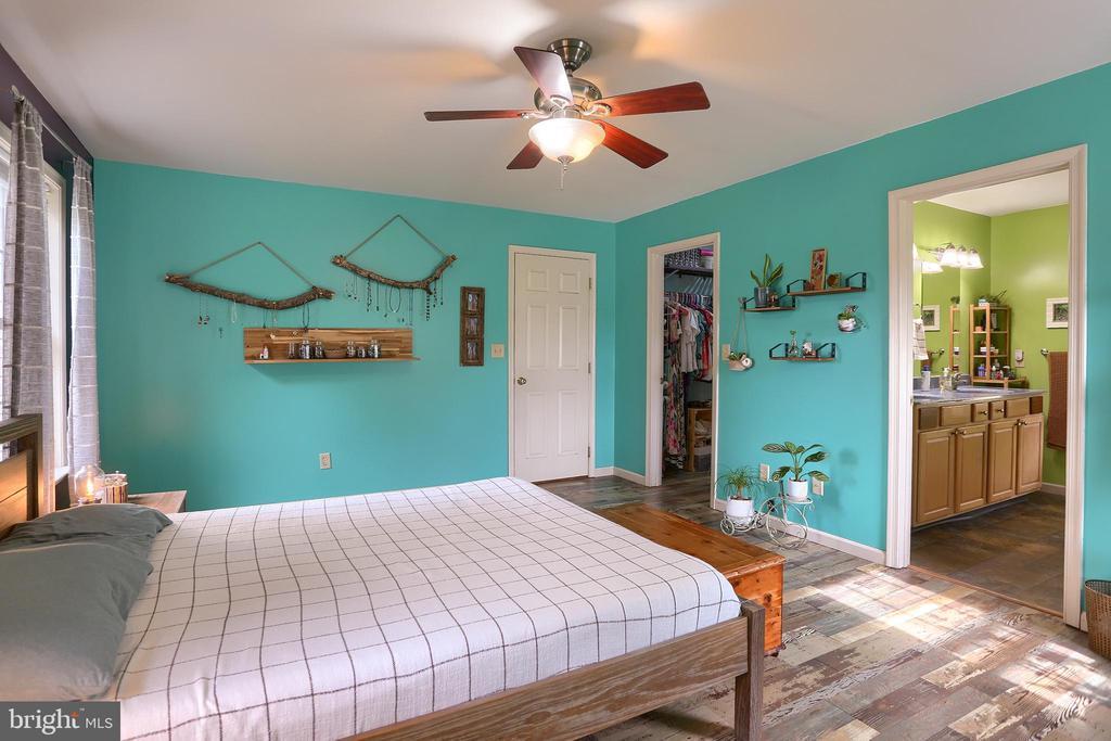 Tub Shower, Carpet, Chair Railing, Entry Lvl BR, Walk-in Closet(s), Wood Floors