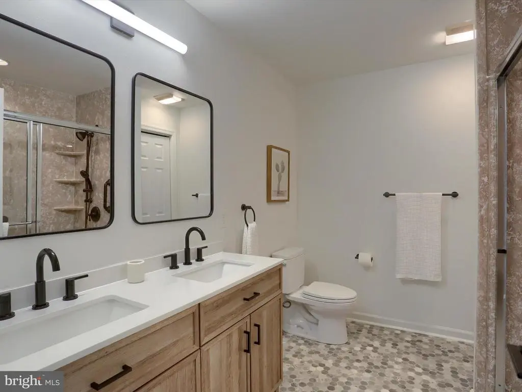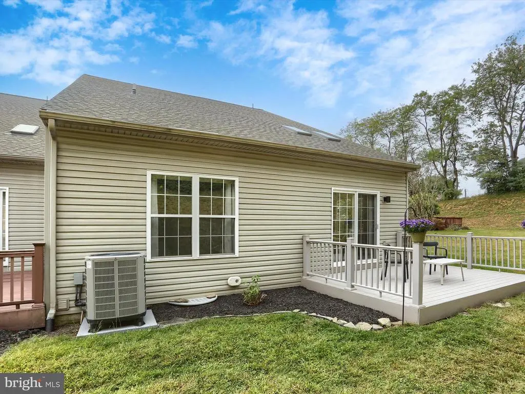 Step into comfort and style in this beautifully upgraded end-unit townhome, where every detail has been thoughtfully enhanced for modern living. From the moment you arrive, you'll be greeted by fresh paint, plush new carpeting, and a welcoming atmosphere that feels like home. The sun-drenched 2-story Great Room is a true showstopper, featuring soaring vaulted ceilings, Velux skylights set into a brand-new roof, and a cozy gas fireplace perfect for chilly evenings. A brand-new American Standard gas HVAC system ensures year-round comfort and efficiency. Step outside onto your private composite deck and enjoy peaceful views while sipping your morning coffee. Your first-floor Primary Suite offers the ultimate retreat, complete with a spacious walk-in closet and a spa-like en-suite bath featuring a double vanity and oversized stall shower. The kitchen and breakfast nook are a delight, overlooking the garden and boasting elegant Silestone quartz countertops, a sleek Delta pull-down faucet, and professionally refinished cabinetry with new doors and drawers—all set atop luxurious vinyl tile flooring. A dedicated laundry room and convenient half bath round out the main level, making everyday living a breeze. Upstairs, discover a flexible loft space ideal for a home office, reading nook, or play area, along with two generously sized bedrooms and a full bath. And don’t forget the expansive unfinished basement—ready to be transformed into whatever your heart desires.