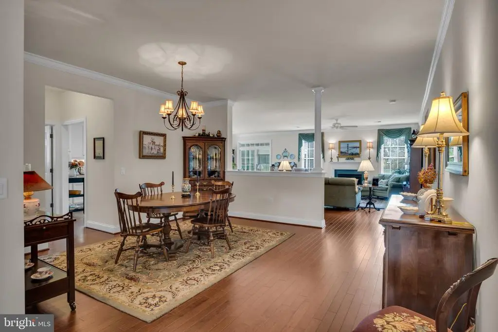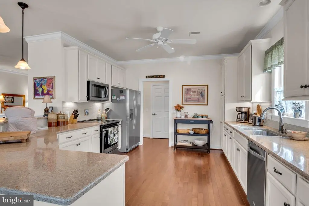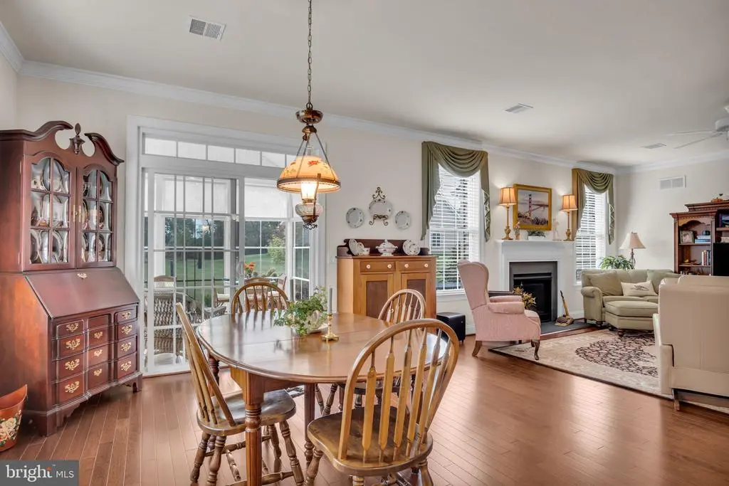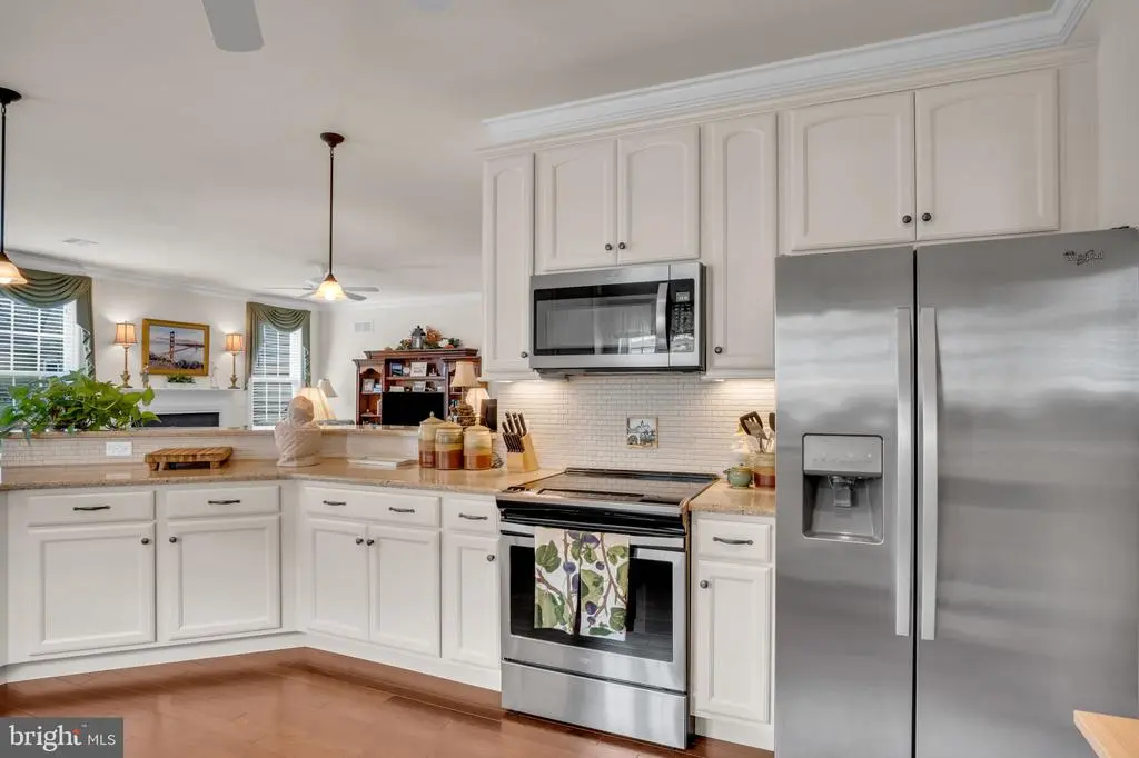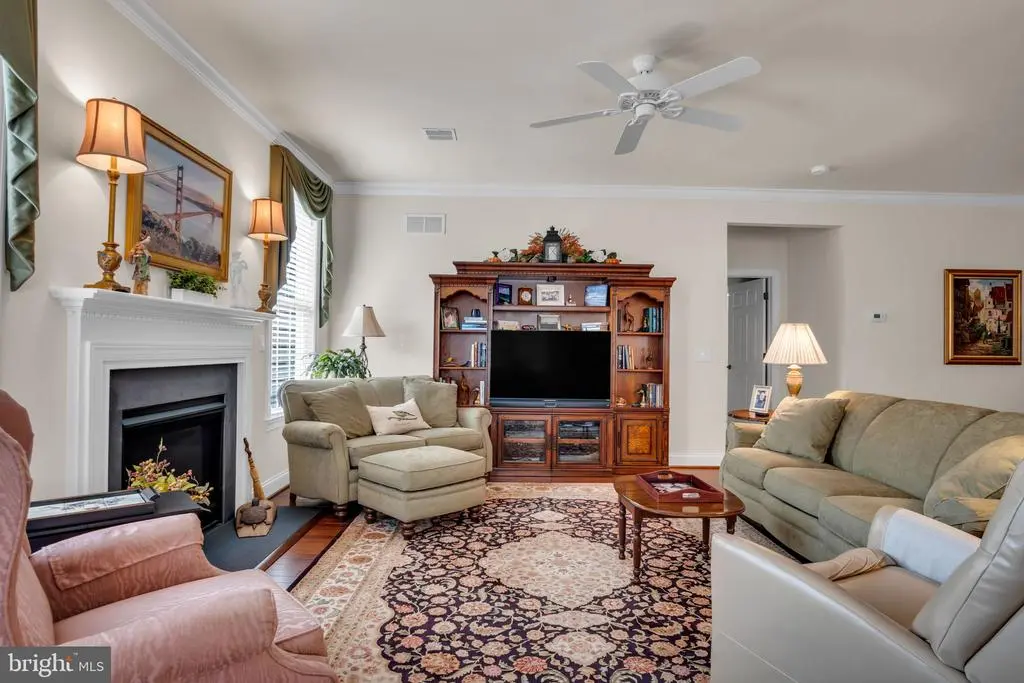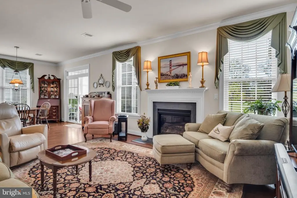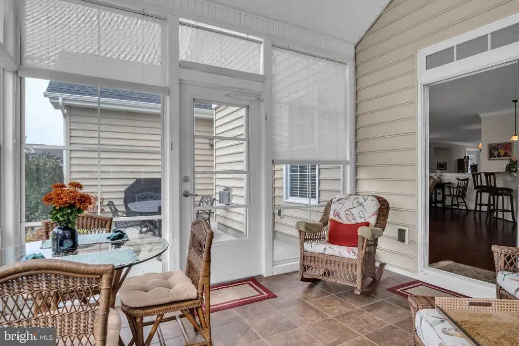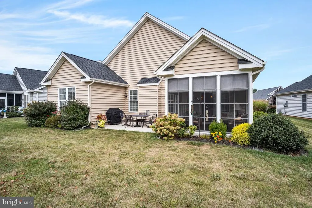 Welcome to this beautiful 3 bedroom, 2 bathroom ranch home offering over 2,400 sq. ft. of living space in the sought-after 55+ community of Traditions of America at Silver Spring. Designed with comfort and style in mind, this home features wood flooring throughout the main living areas and a spacious gourmet kitchen with quartz countertops, stainless steel appliances, and plenty of storage. The open-concept great room boasts a cozy gas fireplace, perfect for relaxing or entertaining. The primary suite includes generous walk-in closets and a private bath for your retreat. A light-filled three-season room extends your living space, leading to a private patio with peaceful views and no homes behind for extra privacy. Additional highlights include a 2-car garage and a large storage space. Enjoy the best of low-maintenance living with access to community amenities including a clubhouse, pools, fitness center, walking trails, and more.