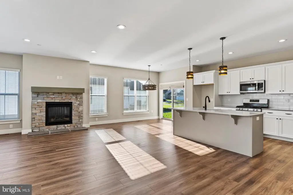 Welcome home to this exceptional end unit townhome in highly sought-after Madison Court at Legacy Park! With almost 3,000 sqft of finished living space, a first floor owner’s suite, and a fully finished lower level, this home is an exceptional value and one you do not want to miss! Step inside to an open concept floor plan featuring 9 foot ceilings, luxury vinyl plank flooring, and an abundance of natural light throughout. The spacious living room showcases a gas fireplace with a stone surround, seamlessly opening to the gourmet kitchen complete with quartz countertops, subway tile backsplash, stainless steel appliances, gas stove, and a 7-foot center island perfect for entertaining. Enjoy casual dining in the bright eat-in area surrounded by windows. The first floor owner’s suite is privately situated at the back of the home and features a walk in closet and a luxurious private bath with a double bowl vanity and tiled shower with glass doors. A convenient first floor laundry room (washer and dryer included) and a mudroom off the rear entry two car garage add to the home’s functionality. The garage is currently wired so that an EV charger could easily be installed. Upstairs, you will find two additional bedrooms, a full bath, and a loft area that is ideal for a home office, playroom, or creative space. The fully finished lower level offers 900 sqft of additional living space, featuring LVP flooring, a built in sound system, and a fourth bedroom, perfect for guests or a home gym. Located in Madison Court at Legacy Park, where you can enjoy walking trails, the community club house, gym, integrated parks, and fantastic local restaurants including Wolf Brewing Company, Luna Italian Cuisine, Down to Earth Café, and Taipei Chinese Kitchen. Just minutes to downtown Mechanicsburg, the Carlisle Pike, and major commuter routes such as the PA Turnpike, I-83, and Route 15. Call us today to schedule your own private tour!