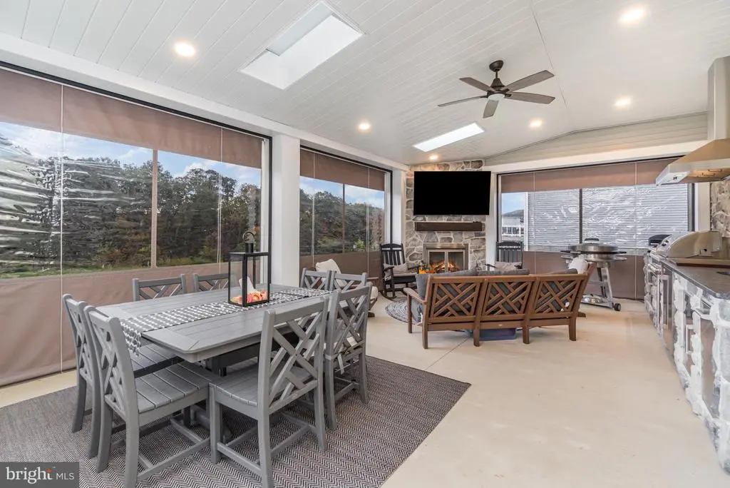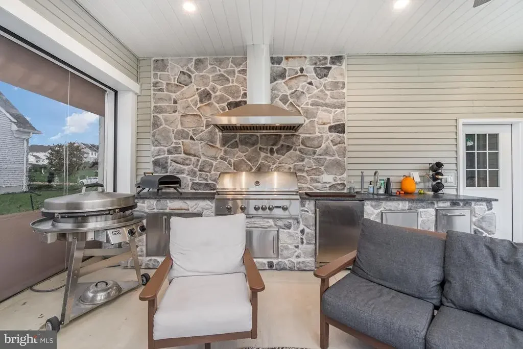 Welcome to this stunning modern farmhouse in the heart of Mechanicsburg’s highly sought-after Silver Spring area! This immaculate home combines timeless elegance with thoughtful updates, creating the perfect blend of comfort and sophistication. Step inside to find an open and bright floor plan with hardwood floors, custom millwork, and large windows that flood the space with natural light. The gourmet kitchen is a showstopper—featuring a massive quartz island, stainless steel appliances, soft-close cabinetry, and gold-tone hardware that elevates every detail. The kitchen opens seamlessly into the dining area and family room, creating an ideal layout for entertaining. Relax in the cozy living room with a stone accent wall and a built in projector, or enjoy the sun-filled playroom/sunroom that overlooks the lush backyard. Upstairs, the primary suite offers a spacious retreat with a luxurious ensuite bath and an expansive walk-in closet featuring custom built-ins. Step outside to the home’s true showpiece—an incredible covered outdoor living area complete with a built-in stone kitchen, stainless appliances, gas fireplace, mounted TV, and dining space. It’s the perfect setting for year-round entertaining! The backyard also includes a sprinkler system and fruit trees near the end of the property.