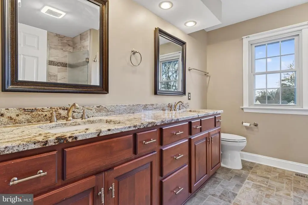 **Open House is cancelled. Apologies for any inconvenience.** Welcome to this stunning five-bedroom, three-and-a-half-bath home, located in Winding Hills, the premier neighborhood in the Mechanicsburg School District. This exceptional property, perfectly blending comfort, style, and extensive upgrades, is situated on a spacious level lot, and on a no through traffic cul-de-sac street. The home features a huge family room with a stone surround gas fireplace that opens seamlessly to the extensive eat-in kitchen. The kitchen includes a center island with seating, stainless steel appliances, ample cabinetry, new granite counters, and a new sliding glass door leading to a 16x14 patio, ideal for outdoor entertaining. A private first-floor office with glass French doors provides a quiet workspace, perfect for remote work or study. Upstairs, you’ll find five spacious bedrooms and three full bathrooms. The primary suite showcases 10-foot ceilings, a remodeled bathroom with a tiled walk-in shower, double bowl vanity with granite counters, a huge walk-in closet, and two additional storage closets. One guest bedroom includes its own private full bath. Additional features include all new LVP flooring throughout, remodeled bathrooms, gas furnace and central air replaced in 2021, new windows, new garage door, and numerous other upgrades. The unfinished basement includes a Bilco door with exterior exit, providing convenient access and future finishing potential. Residents of Winding Hills enjoy an exceptional lifestyle with 120 acres of green space, walking trails, a community saltwater pool, gym, and clubhouse. The neighborhood also offers easy access to major highways and the PA Turnpike, making commuting a breeze.