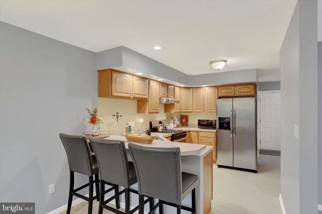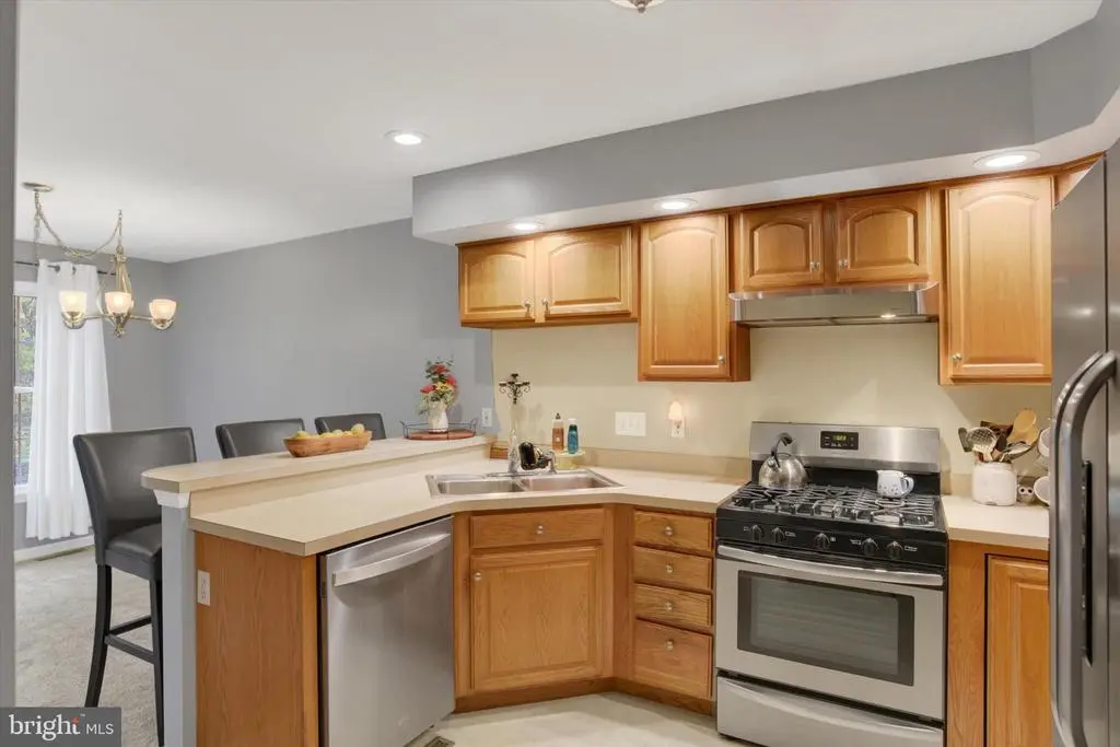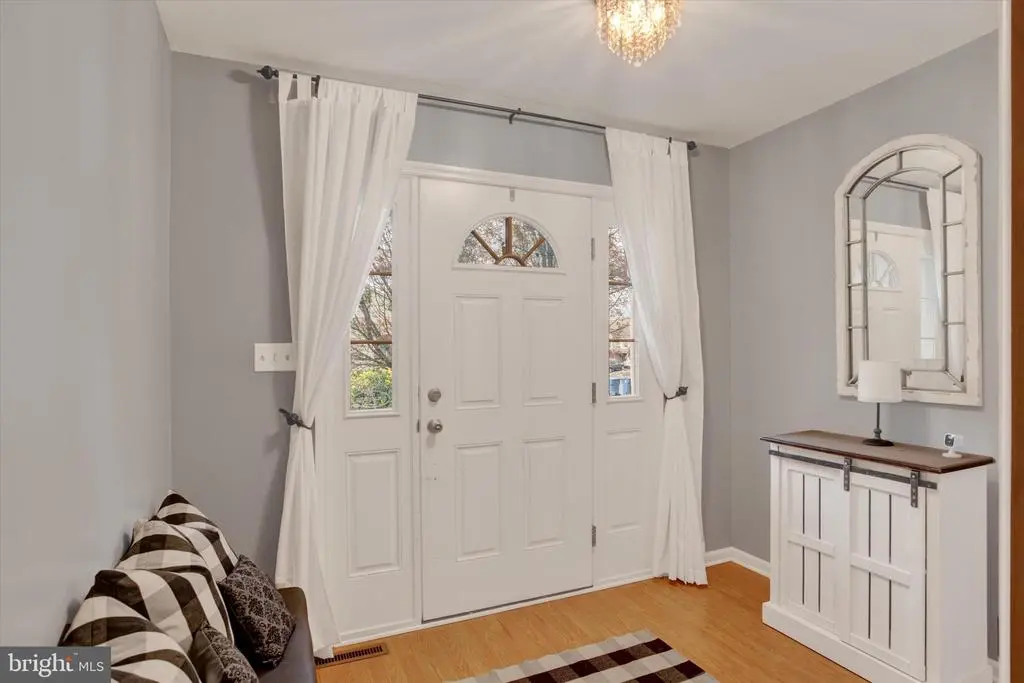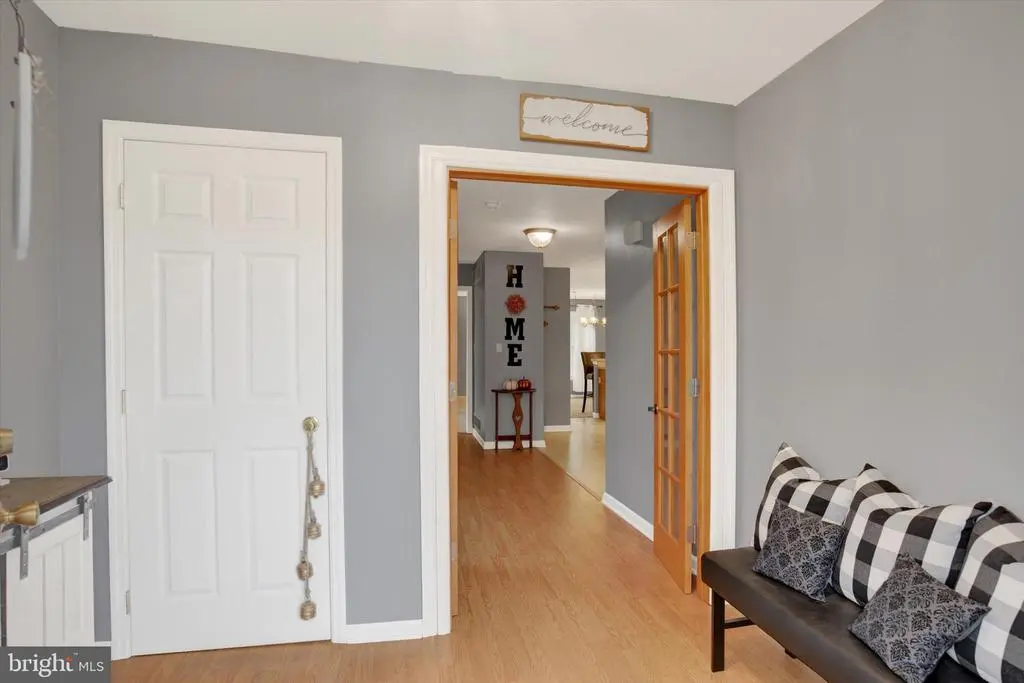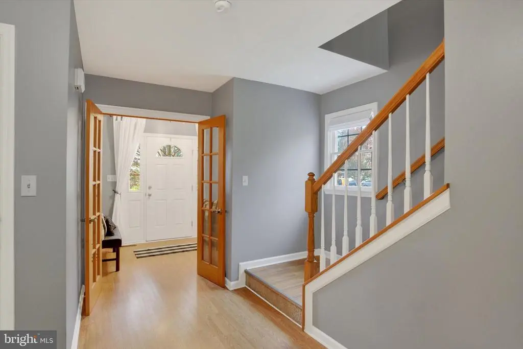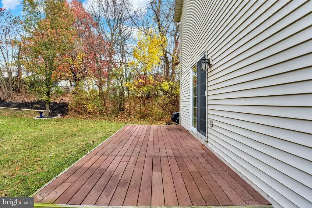 Welcome home to this beautiful, turn-key end unit in the desirable Bowmans Village community! Step through the front door into an inviting foyer featuring lovely new French doors and durable luxury vinyl plank flooring. The well-appointed kitchen offers stainless steel appliances, including a new dishwasher, upgraded sink faucet, and recessed lighting. A built-in desk provides a convenient workspace or drop zone, while the open layout flows seamlessly into the dining area—perfect for entertaining family and friends. The spacious living room connects effortlessly to the dining area, creating the ideal setting for movie or game nights. Step outside to enjoy your morning coffee or evening unwind on the private deck. A convenient half bath completes the main level. Upstairs, you’ll find three comfortable bedrooms, including a spacious primary suite with a walk-in closet and a private ensuite featuring double vanity. A second full bath serves the 2 additional bedrooms, and the laundry is conveniently located on this level as well. This home offers peace of mind with plenty of updates, including a new roof, dishwasher, storm door, garbage disposal, smoke detectors, garage door opener, and refreshed lighting in the half bath, front porch, and entryway. Need more space, head to the unfinished basement, great for all your storage needs, or finish the space for additional living space. All of this and no HOA fee! Move right in and start enjoying low-maintenance living close to shopping, restaurants, parks, and major highways—this home is truly a joy to own!