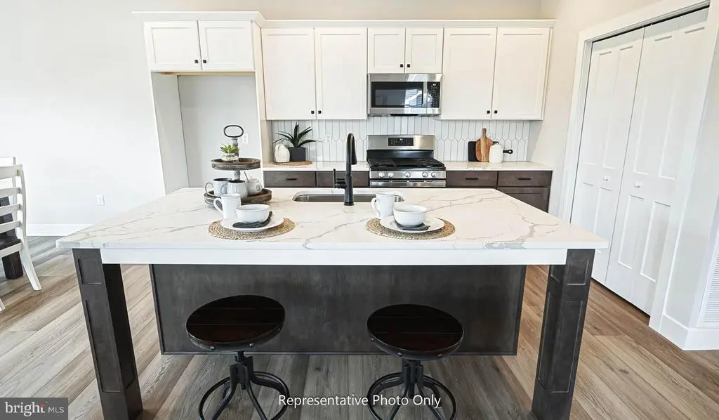 UNDER CONSTRUCTION – AVAILABLE THIS WINTER: This 2-story home features an open floor plan, generous living spaces, and a 2-car garage with mudroom entry. The first floor boasts 9ft ceilings and stylish vinyl plank flooring throughout the main living areas. A versatile flex space to the front of the home can be used as an office or den. The open kitchen features stainless steel appliances, quartz countertops with tile backsplash, and a large island and pantry. Adjacent to the kitchen is the sunny dining area with sliding glass door access to the rear patio. The cozy family room is warmed by a gas fireplace with stone surround. All 4 bedrooms, 2 full baths, and a convenient laundry room can be found on the 2nd floor. The spacious owner’s suite includes an expansive closet, tile shower and double bowl vanity.