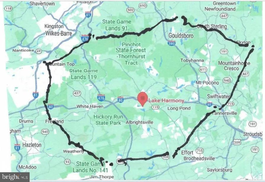 Commercial Office building on 2 acre site with large parking area and storage building. Located in Lake Harmony just off Route 903. Main building has office space on the 1st floor which includes reception, offices, conference room(s) and bathroom. The 2nd floor has its own separate entrance with full bathroom, kitchen and office space. Building has been impeccably maintained with a $30k+ metal roof and skylights installed. Property includes 1.5 acres of undeveloped land and a 600 sq ft barn with electricity, heat and water. Minutes to I-80 and I-476. Near entrance to Big Boulder and Split Rock. Newly paved parking lot! SEE ATTACHED DOCUMENTS FOR MORE INFORMATION.