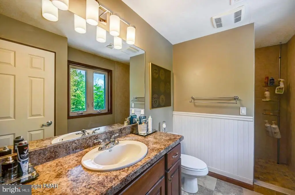 THIS ELEGANT HOME IS TRULY YOUR OWN SHANGRI-LA-LOCATED ON THE SPLIT ROCK GOLF COURSE- AFTER 18 HOLES COME HOME TO YOUR OWN PRIVATE OASIS- IN-GROUND POOL, HOT TUB AND GAZEBO -- ALL SURROUNDED BY TREES AND NATURE GIVING YOU TOTAL PRIVACY - MODERN KITCHEN WITH SS APPLICANCE OVERLOOKING DINING ROOM THAT HAS A SLIDING DOOR LEADING TO THE DECK WITH A MAGNIFICIENT VIEWS.-LIVING ROOM W/2 SIDED STONE FIREPLACE FIREPLACE WITH COZY FAMILY ROOM ON THE OTHER SIZE -- OFFICE /PLAY ROOM AND POWDER ROOM COMPLETE THE FIRST FLOOR-STAIRWAY LEADS TO 3 BEDROOMS EACH WITH IT OWN PRIVATE BATH- BASEMENT WITH FAMILY ROOM AND FULL BATH- LAUNDRY AREA.-CENTRAL AC 2 CAR GARAGE-- TOO MUCH TO LIST-PERFECT VACATION OR PRIMARY HOME-- HAS IT ALL- COME SEE FOR YOURSELF