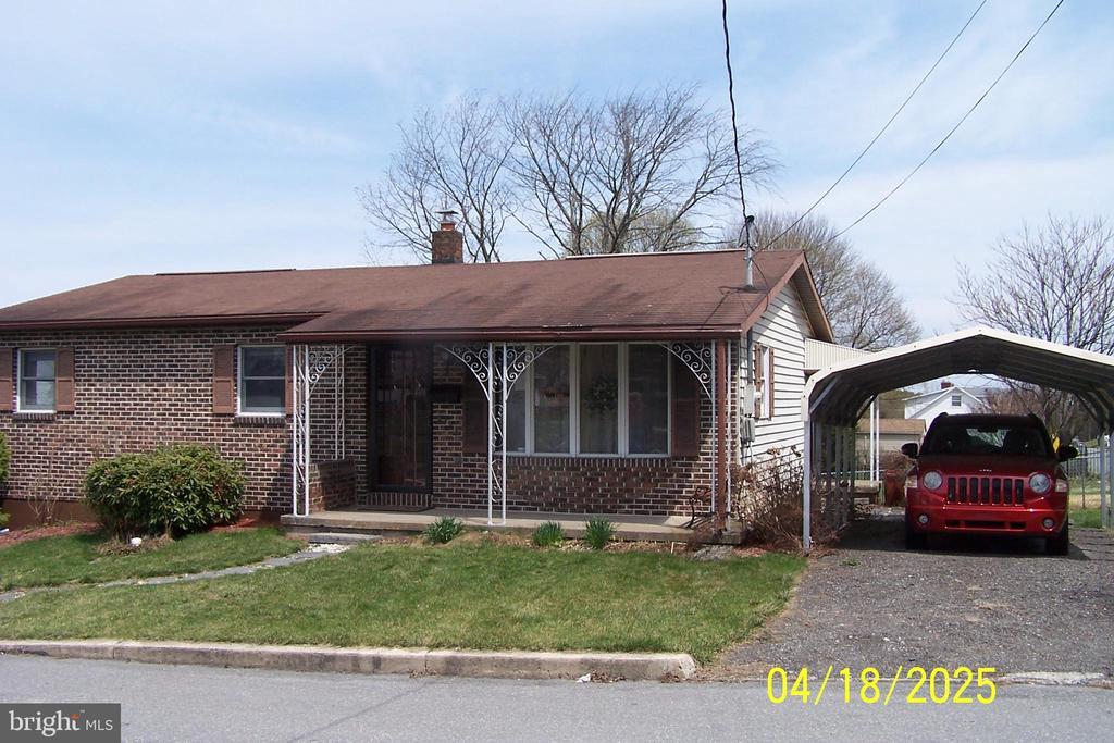 Desirable 3 bedroom, ranch home with brick front/vinyl siding & adjacent carport. Corner property with surrounding yard & newer shed. Large family room on lower level, with coal burning stove & built in cabinetry, 200 AMP service, modern eatin kitchen, one bedroom conveniently turned into main floor laundry/office, but could be relocated to basement if desired. Ceramic tile bath on main level. Range, dishwasher, refrigerator , washer & dryer all included,. With some new paint & flooring this could be your dream home, take a look today as it will not last long.