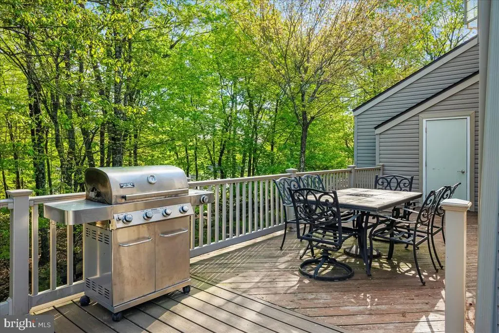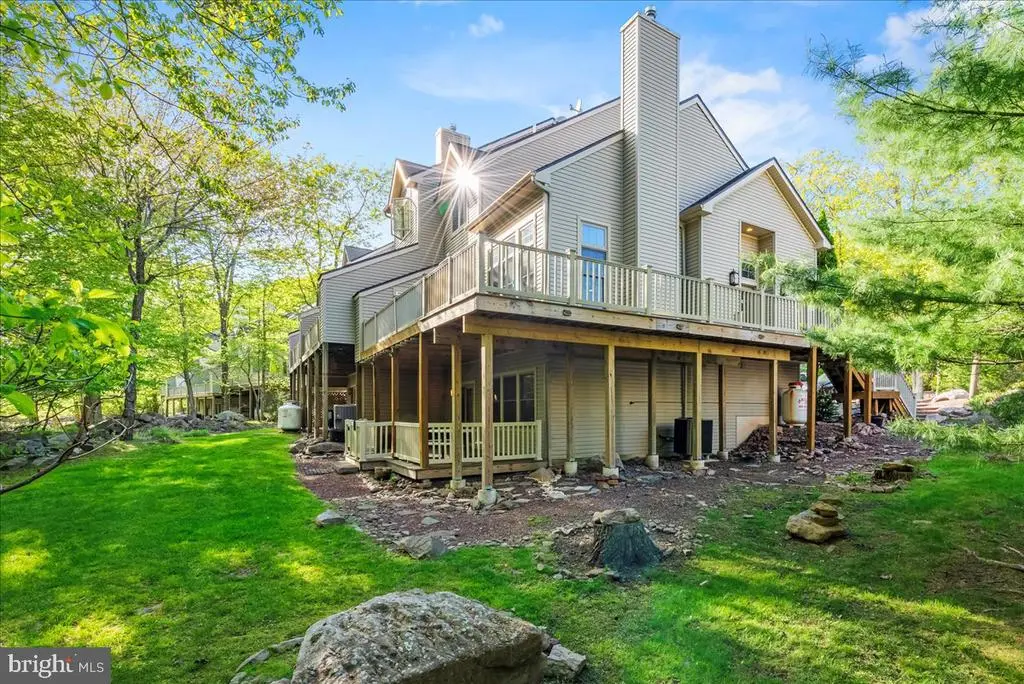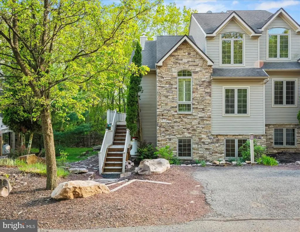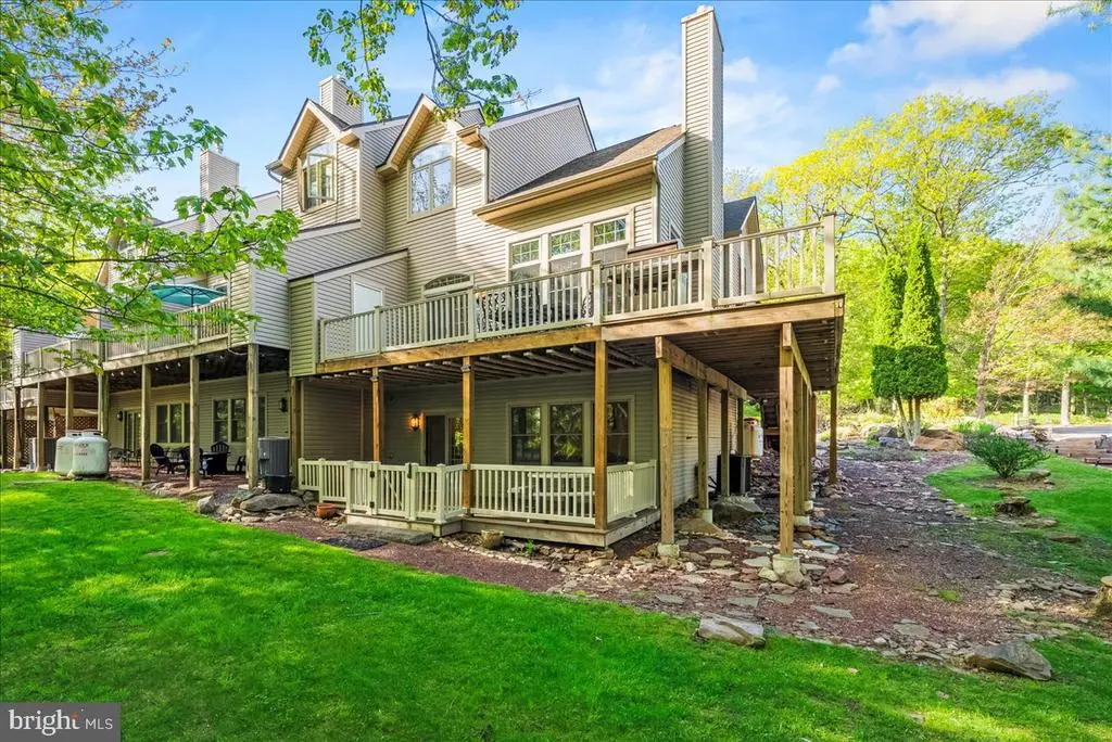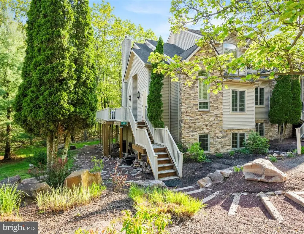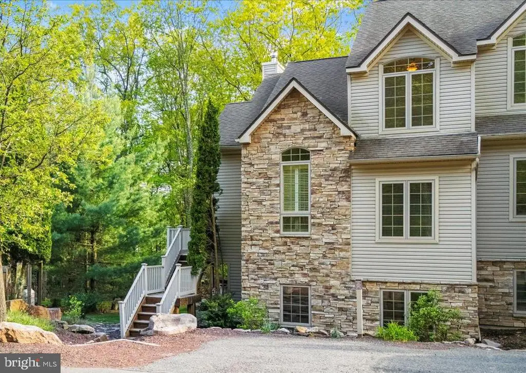 Enjoy a serene mountain getaway at 42 Mountainwoods Dr. This property is a luxurious end-unit townhouse located near the base of Big Boulder Ski Resort and Boulder Lake Club. Minutes away from Jack Frost Ski Resort as well as Jack Frost National Golf Club and Split Rock Golf Club. This home is extremely well-maintained and comes FULLY-FURNISHED and turnkey! This property has an airy open floor plan with vaulted ceilings, perfect for entertaining. The first-floor master suite is a spacious retreat with a private sauna and walk-in shower. Downstairs, the large finished walk-out basement features a kitchenette and a professional Brunswick pool table (included with property). Additionally the unit has a custom wrap around deck on the main level, the only one of its kind in the neighborhood. High-end finishes throughout with Brazilian Cherry hardwood floors, and Italian Porcelain tile. Beautiful mountain views are visible from the main level of the home. It's not uncommon to spot deer and other wildlife wandering about. The neighborhood is quiet and peaceful, the perfect place to unwind and enjoy nature. This property is in the Laurelwoods HOA, short-term rentals are allowed, and it is eligible for membership in the Boulder Lake Club. Big Boulder Lake is a powerboat lake and docking areas are available with membership. There are tennis courts behind the property about 50 yards away, as well as clay tennis courts at the Lake Club. Furthermore the lake club has a pool, volleyball courts, beach with lounge chairs, playground, fishing, kayak and powerboat rentals, and much more... There are tons of fabulous restaurants and bars in the area such as Louies Prime Steakhouse, Shenanigans, Sunset Green Restaraunt, Boulder View Tavern right on the lake and many more. The area is rich with wineries, breweries, hiking, biking, skiing, and lakes. The world famous Pocono Raceway is just a short drive away. This home offers the best lifestyle in the Pocono Mountains!